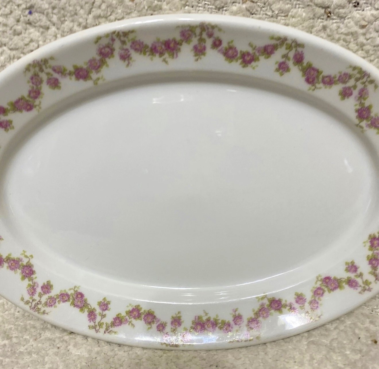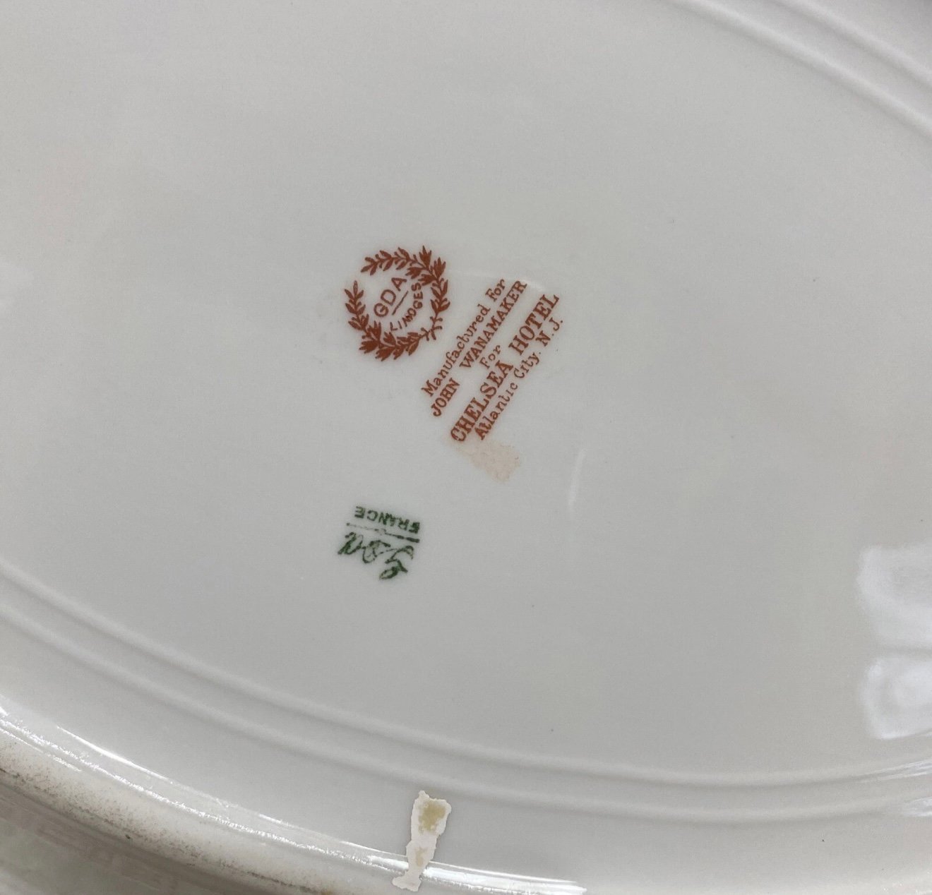 GDA Limoges John Wanamaker for the Chelsea Hotel in Atlantic City NJ pink and green floral oval serving dish.