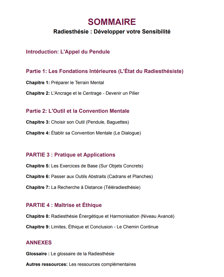 Si vous ressentez l'appel du pendule, vous êtes au bon endroit. Pendant trop longtemps, la radiesthésie a été vue comme un "don" , mais la vérité est plus simple : c'est une compétence , une sensibilité innée que nous possédons tous et qui peut être entraînée.