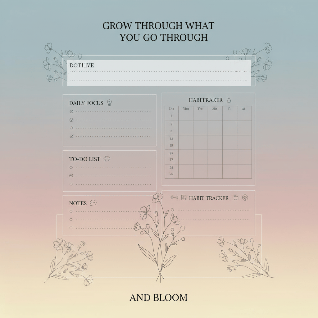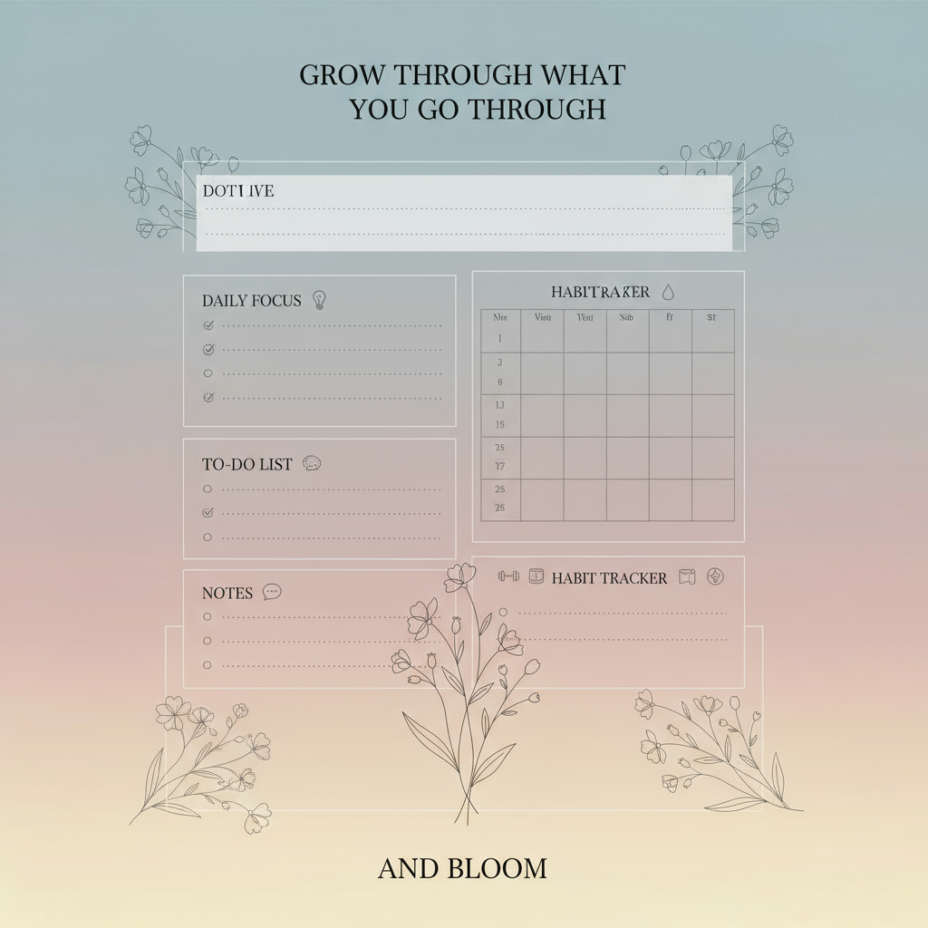 Stay organized, motivated, and mindful every day with the Grow & Bloom Daily Planner Template 🌸. Designed with a calming gradient background and elegant floral accents, this planner helps you: