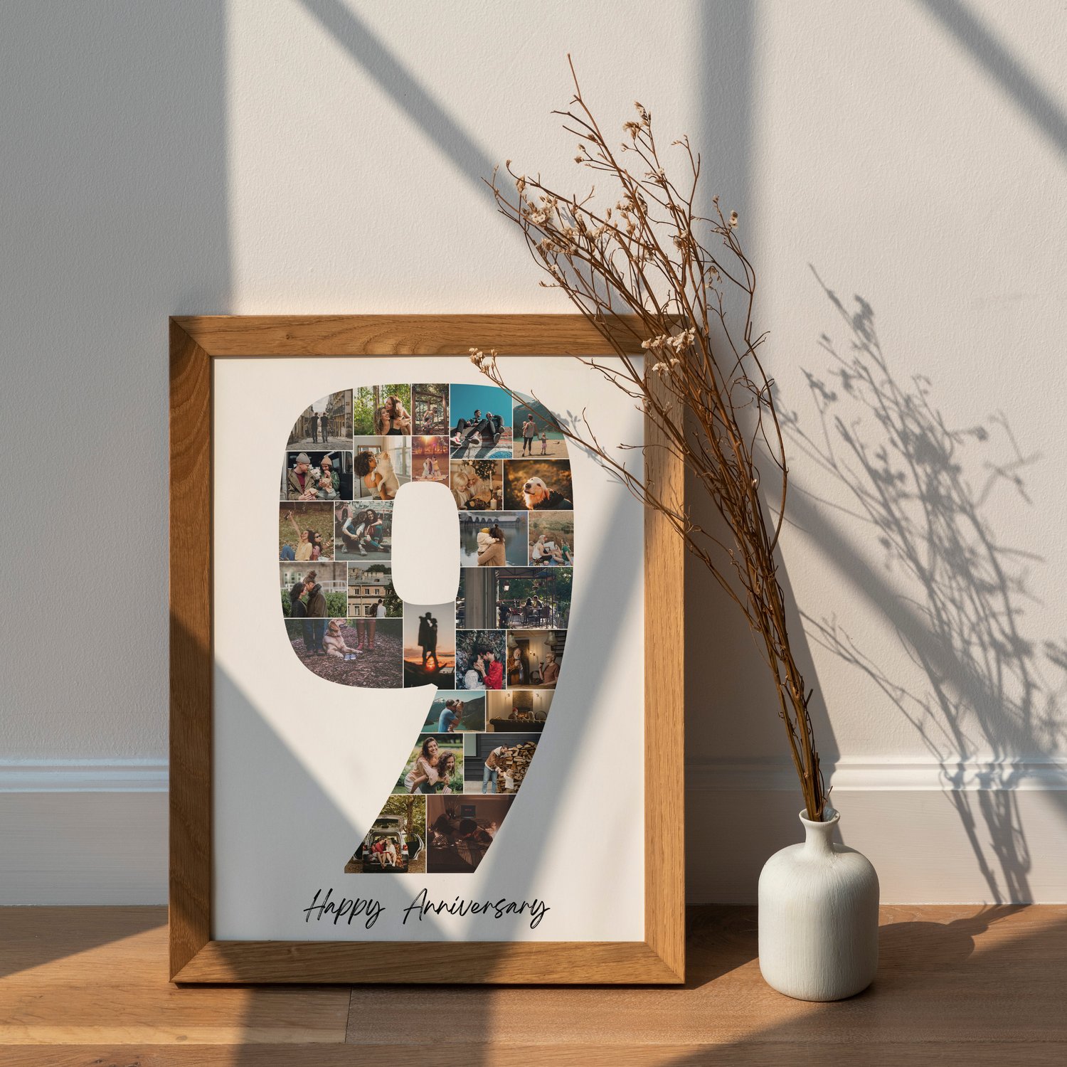 EDITABLE 27 photos, Personalized 9th Anniversary Photo Collage Template Gift for Boyfriend, 9th Birthday, Digital Printable