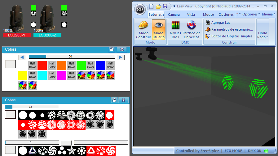 Esta Librería SSL2 está optimizada para trabajar con Magic 3d Easy View. Es decir para ver una representación 3D de las secuencias que estemos realizando con Freestyler, QLC+ o cualquier otro soft que se conecte con Magic 3d.