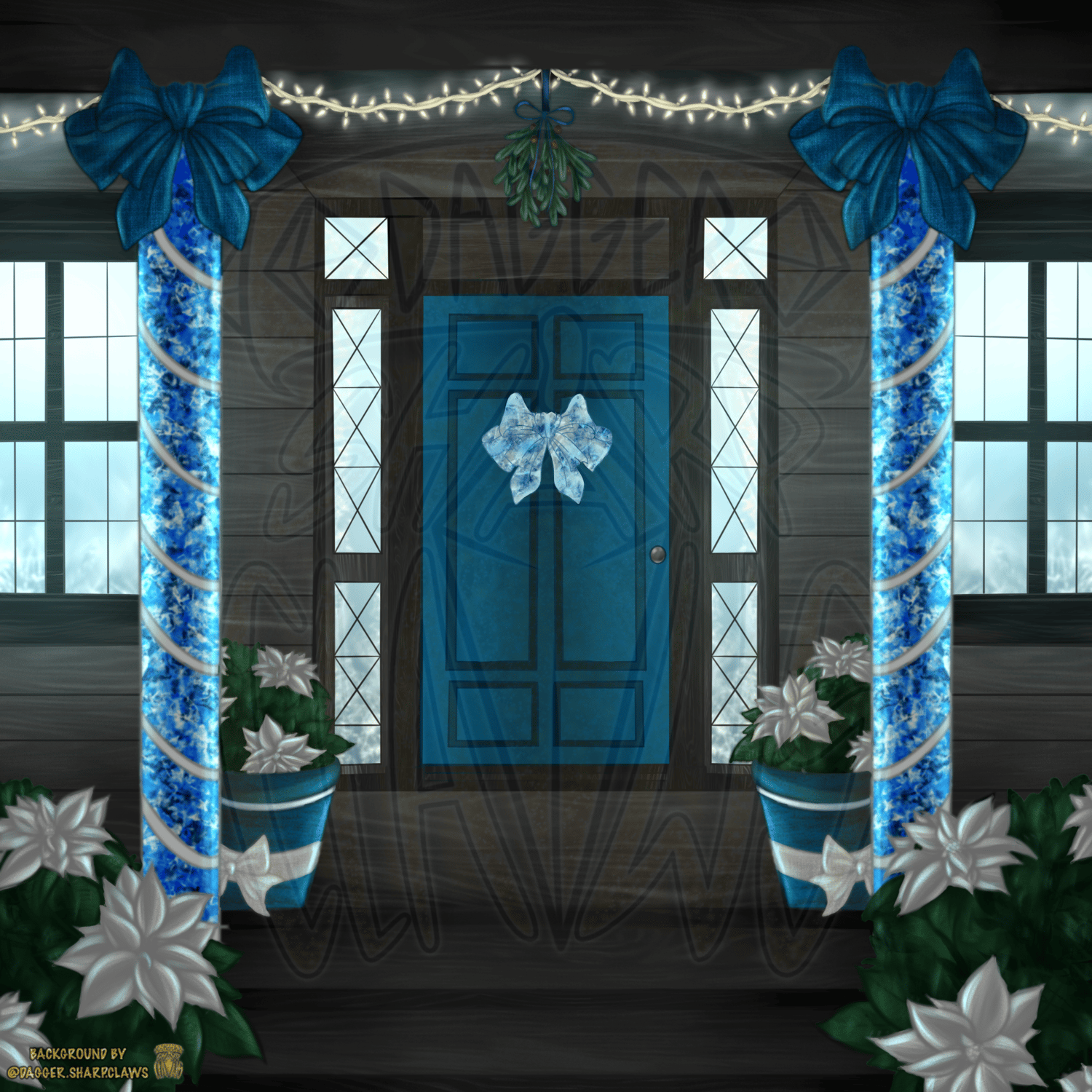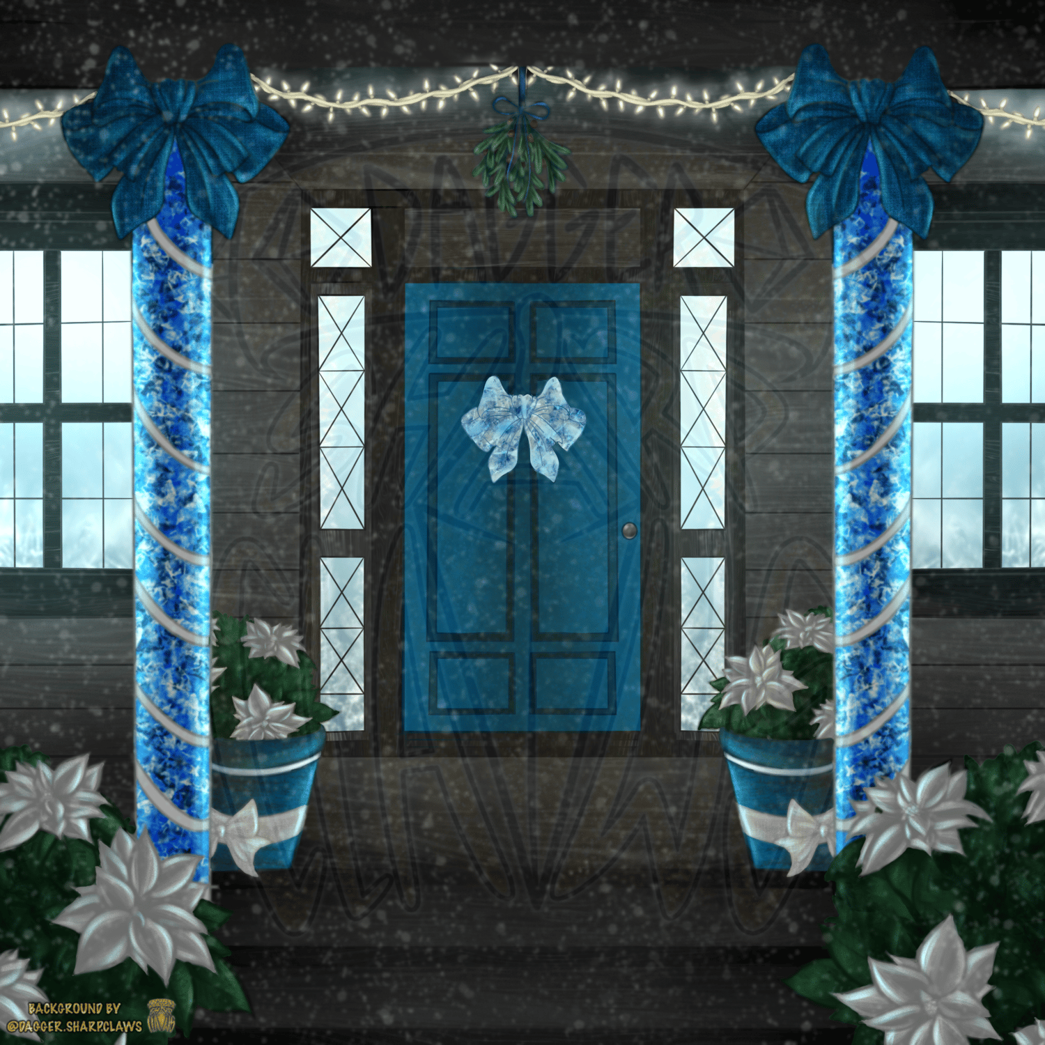 Cute mistletoe doorway (layered files): comes with 2 different color options + removable snow. Have fun drawing your characters into/ over the scene!!