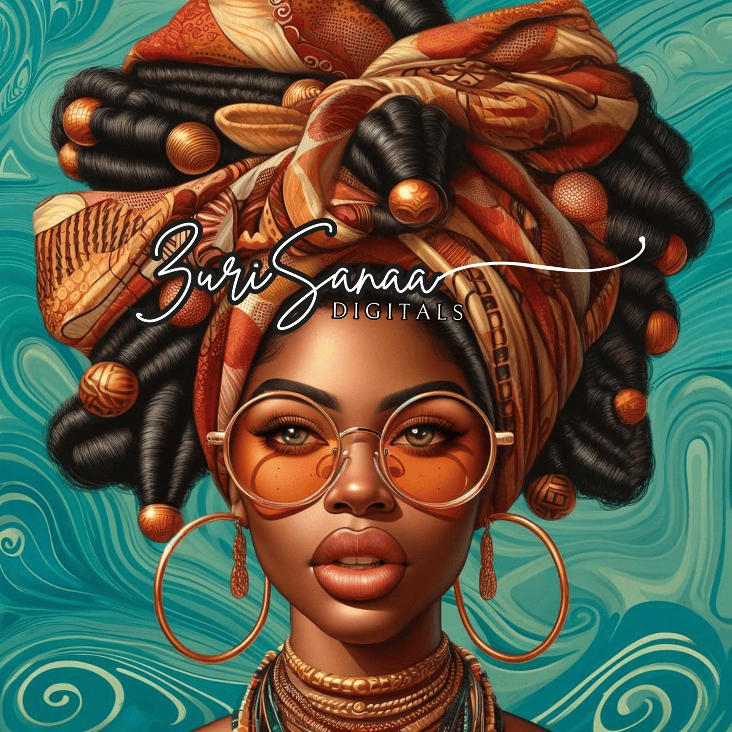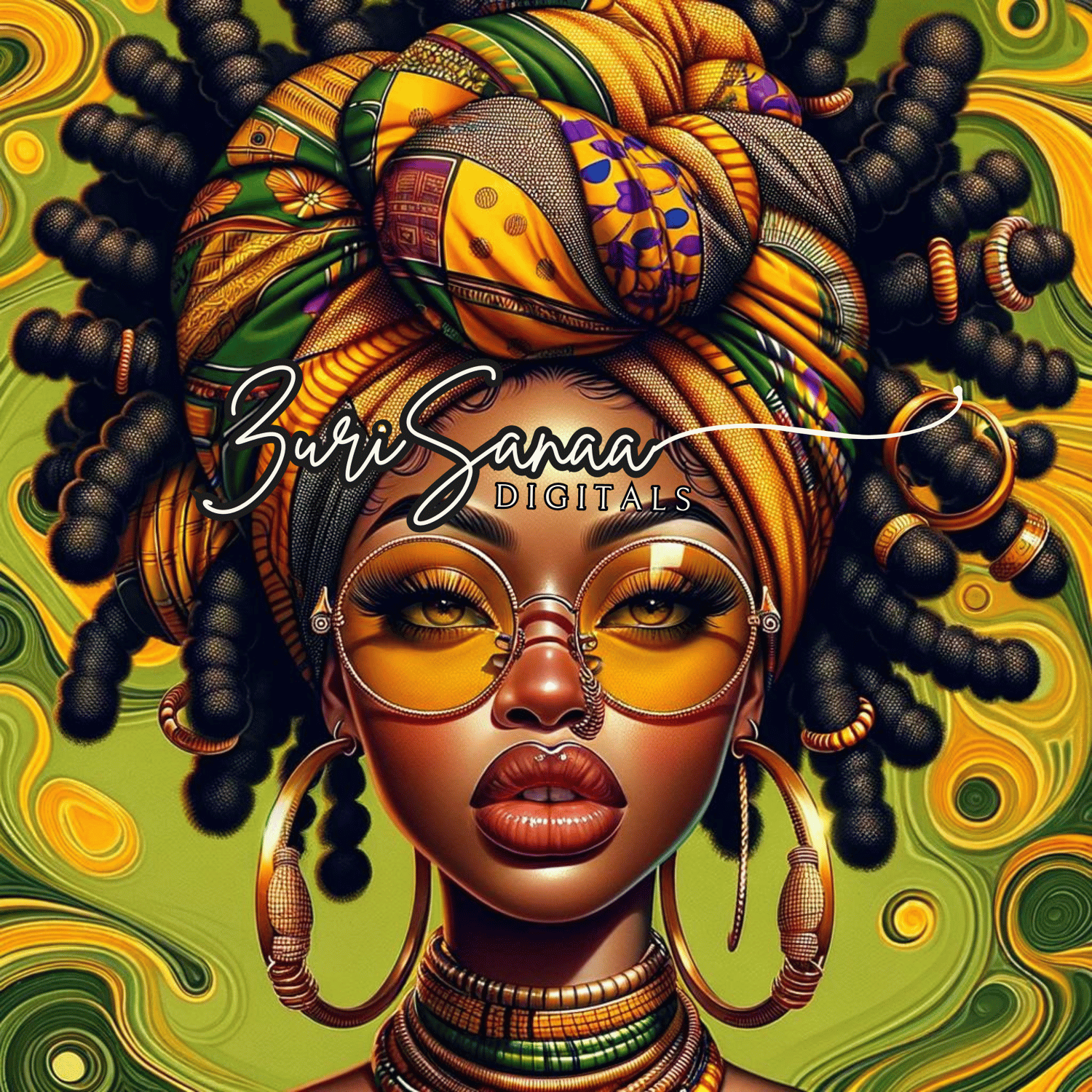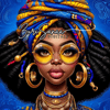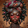 10 PNG Images of a Beautiful Black Woman with High, Intricate Turban - Extreme Caricature Hyper-Realistic Digital Illustrations