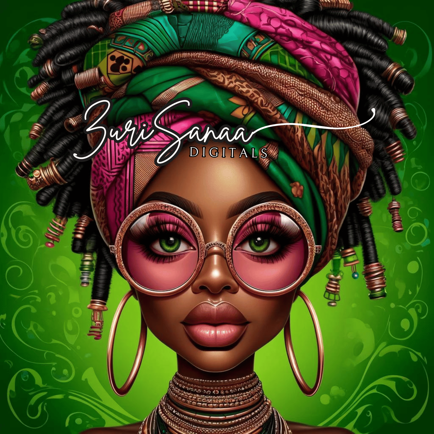 - Detailed Afrocentric jewelry including necklaces and bracelets