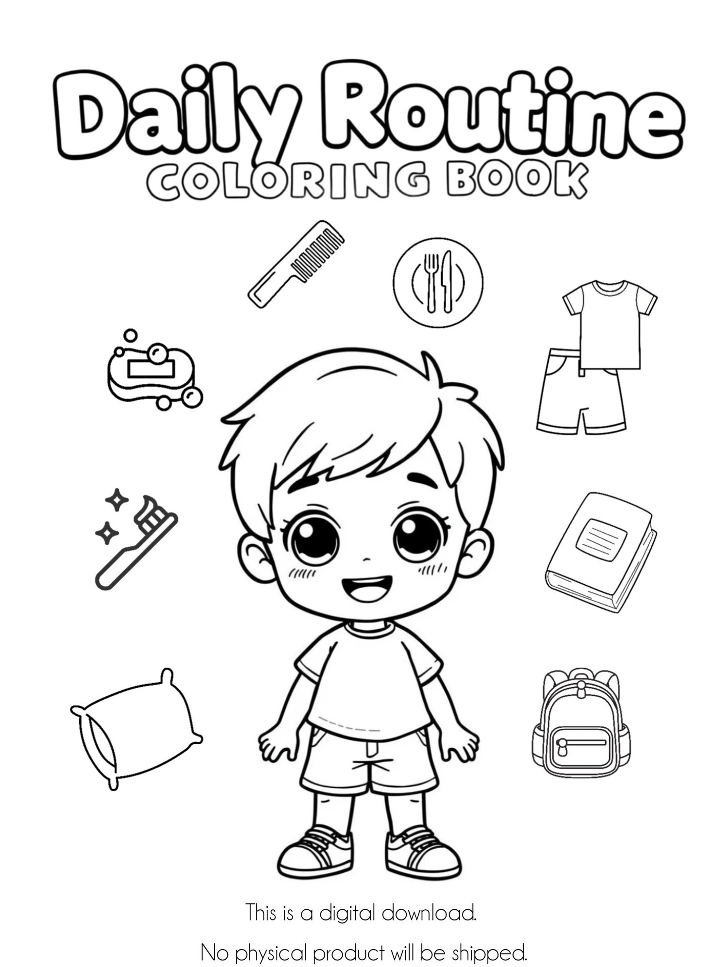 Morning Routine Coloring & Spelling Workbook (Ages 3–5, 10 Printable Pages)