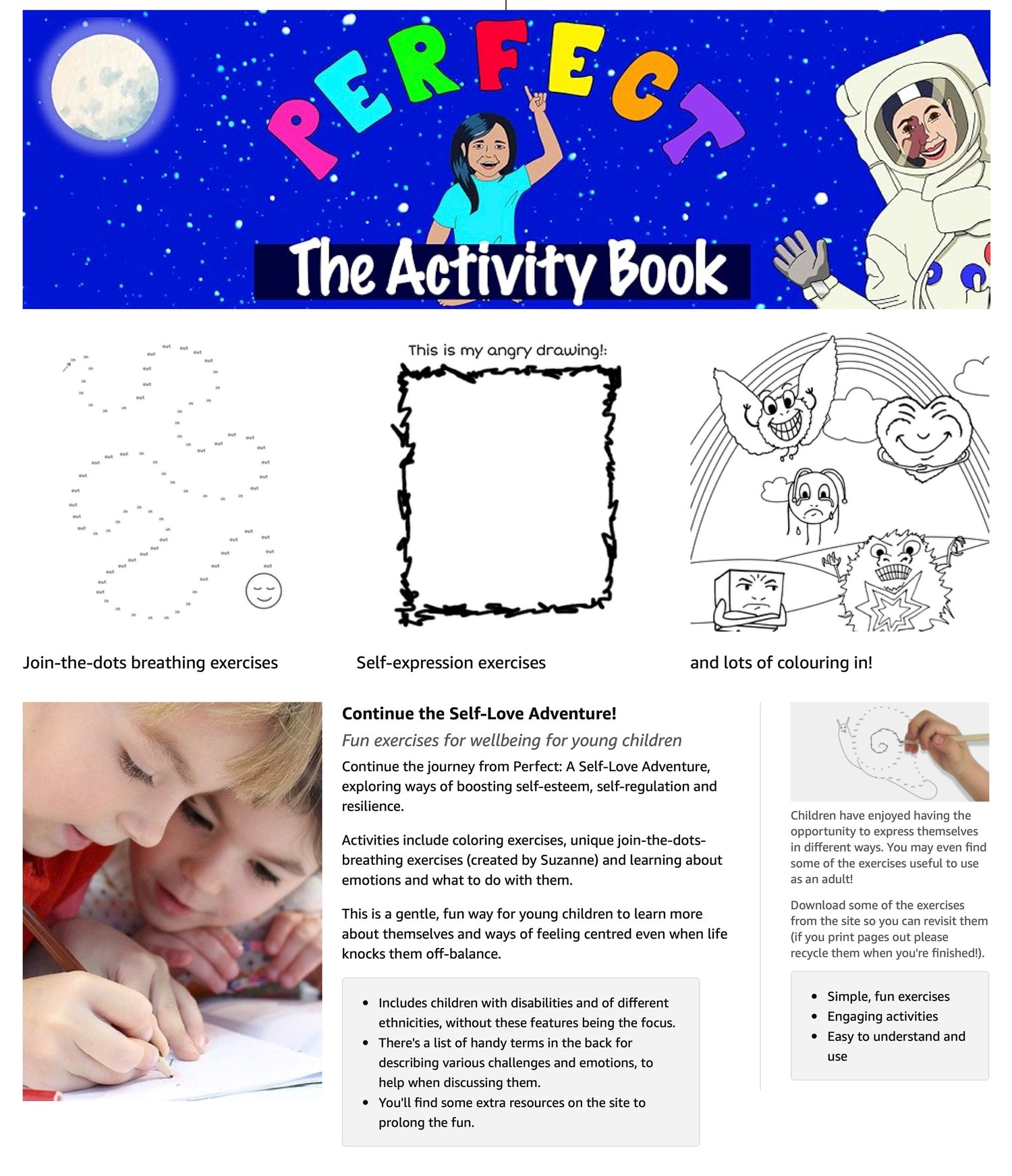 This activity book follows on from the themes explored in the picture book Perfect: A Self-Love Adventure where you will find many of the same characters learning about self-acceptance and resilience together.