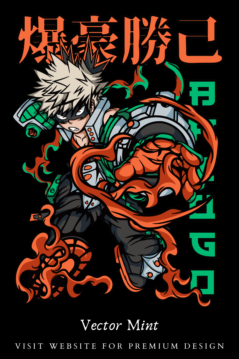 Bakugo Explosion Power Anime Streetwear T Shirt Design PNG Manga Action Graphic Premium Vector