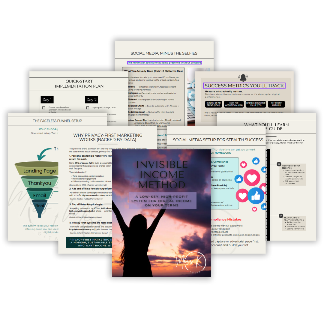 The Invisible Income Method gives you a step-by-step, privacy-first blueprint to build digital funnels—without the chaos of content burnout, personal branding, or social media overwhelm.