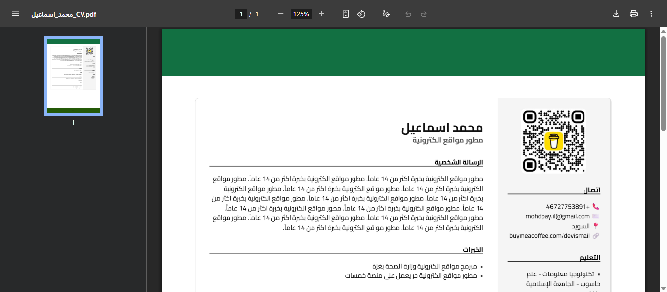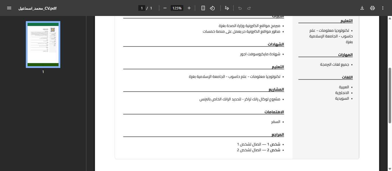 ✅ Multi-Language Support – Create resumes in English or Arabic with one click.