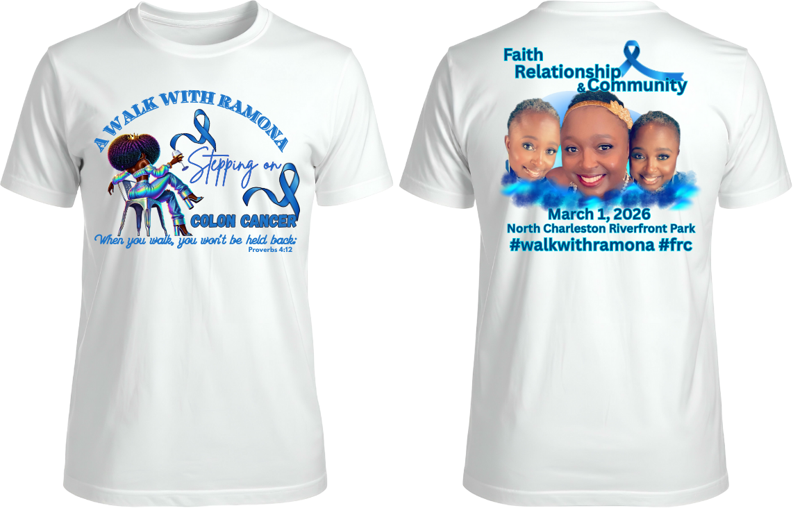 Stand strong, walk in faith, and show your support with the A Walk With Ramona: Stepping on Colon Cancer awareness T-shirt. Designed to inspire hope and unity, this shirt represents resilience, community, and the power of walking together for a cause that matters.