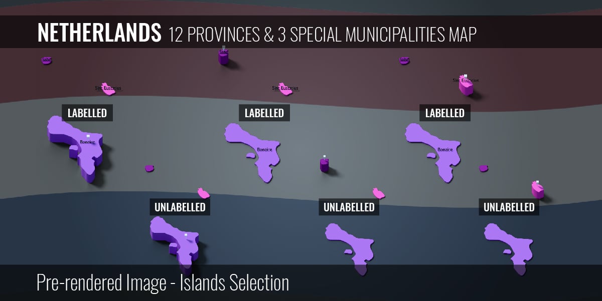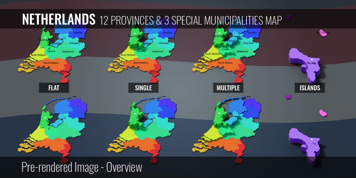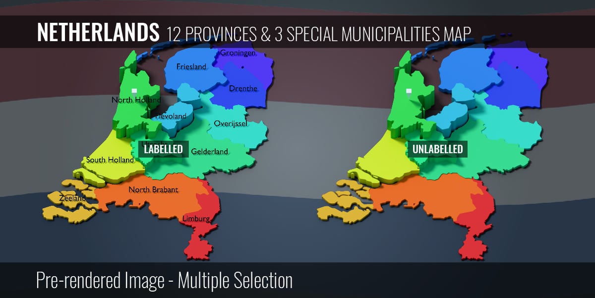 Netherlands - 12 Provinces & 3 Special Municipalities Map (3D + Pre-rendered Images)