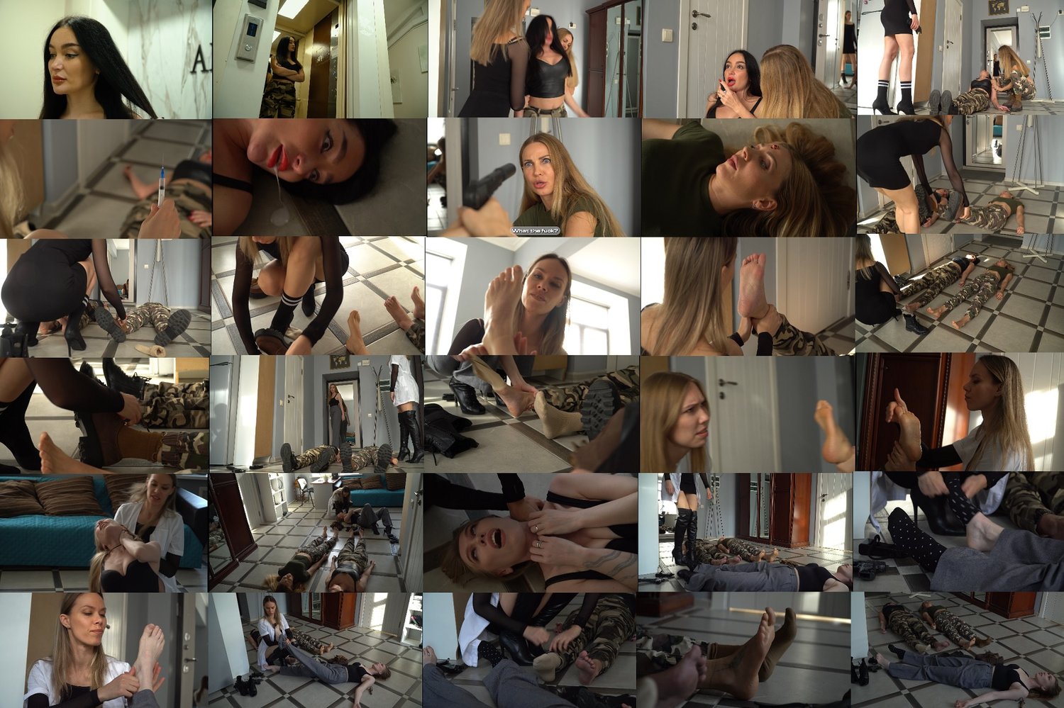 Ksysha has finished her jobs for the day and is ready to go home, where she’s suddenly attacked. The scene from Michael Clayton ensues. Ksysha can only move her eyes once she’s been paralysed. We see a close up of Ksysha’s boot being removed and see her socked foot flop onto the floor. The smell hits model 3 straight away but, she has a job to do. Sally slowly peels off her sweaty sock. By Sally’s expression, we see the smell has got even more intense. Once the serum has been injected into her toe. Her body starts convulsing and jolts violently. We can also hear her moan as the serum takes hold. She starts foaming from the mouth. At the end, the camera focuses on her foot. Her toes scrunch together. She then falls completely limp. The camera picks up a few slight toe twitches. MaryAnn checks her pulse and then they start to clean up. Maryann starts wiping away the foam from ksysha’s mouth. Sally gets half way through putting her sock back on, when she decides that she’s gonna live out her darkest fantasies. She stops what she’s doing, pulls out a silenced pistol. Maryann looks at the model ‘ No No!’. A bullet strikes her in head. She flops over straight away. We hear a slight moan as the last breath leaves her body. We see a close up of some slight finger twitches. The model then lays MaryAnn flat next to Ksysha and then moves down to their feet.