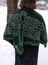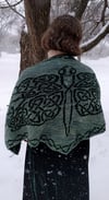 This double knit shawl features the motif of a Dragonfly crafted entirely from Celtic knotwork..