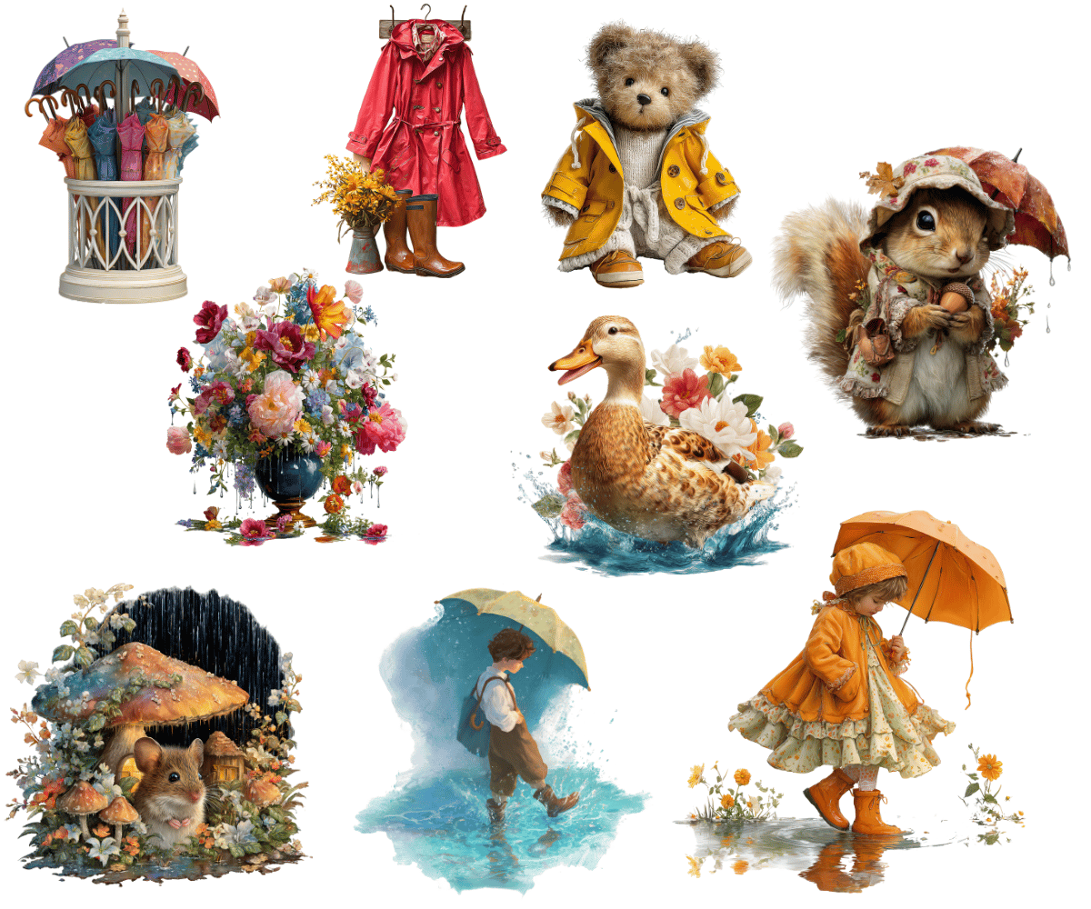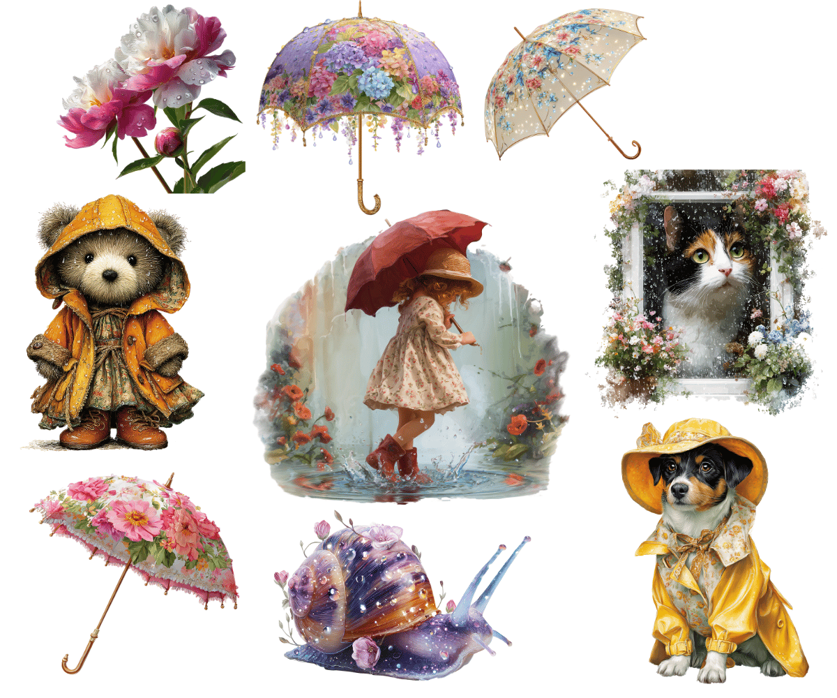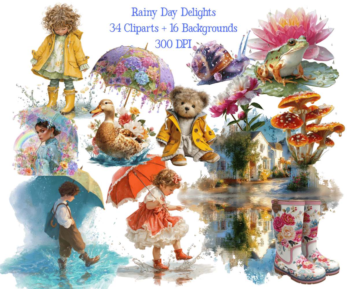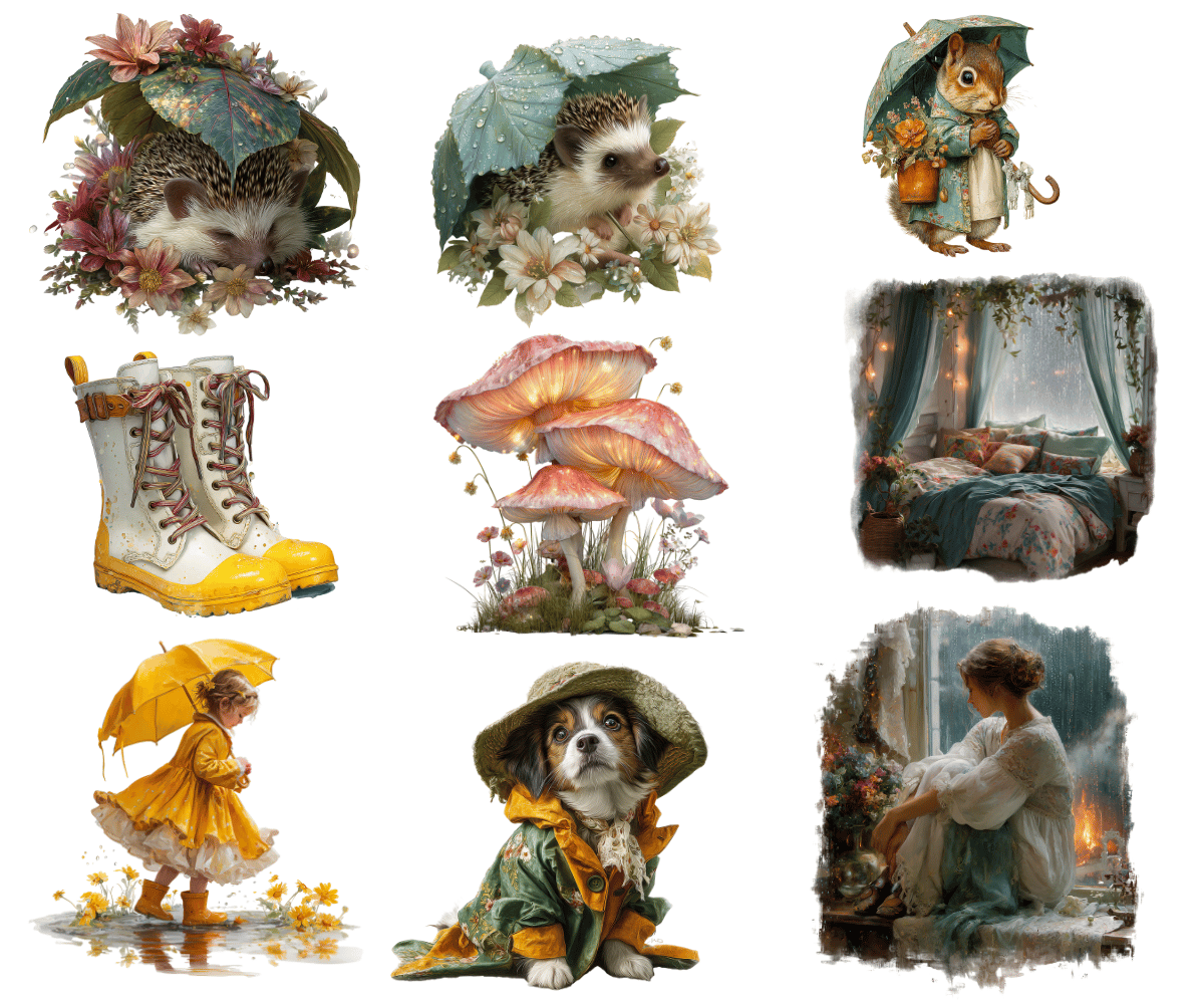 Elevate your crafting projects with our Rainy Day Delights Clipart and Backgrounds bundle. Perfect for instant download and sublimation design backgrounds. Backgrounds include elegantly styled papers suitable for crafting projects in gorgeous rich tones evocative of the sweet rainy day aesthetic. Ideal for digital art, printable clipart, and crafting, this set is a must-have for creating charming arts and crafts designs. In fact, cut them out and place them on your planners to make for an extra special gift for an organizer.