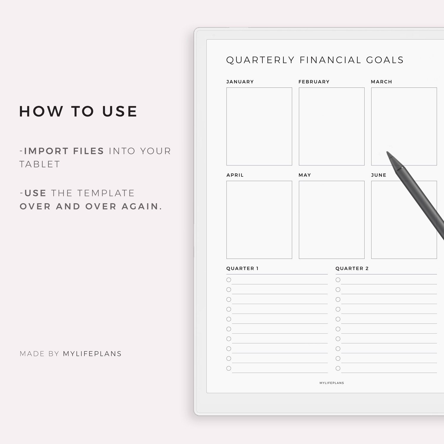 Quarterly Financial Goals Planner for Remarkable, Supernote, Kindle, Boox, Kobo
