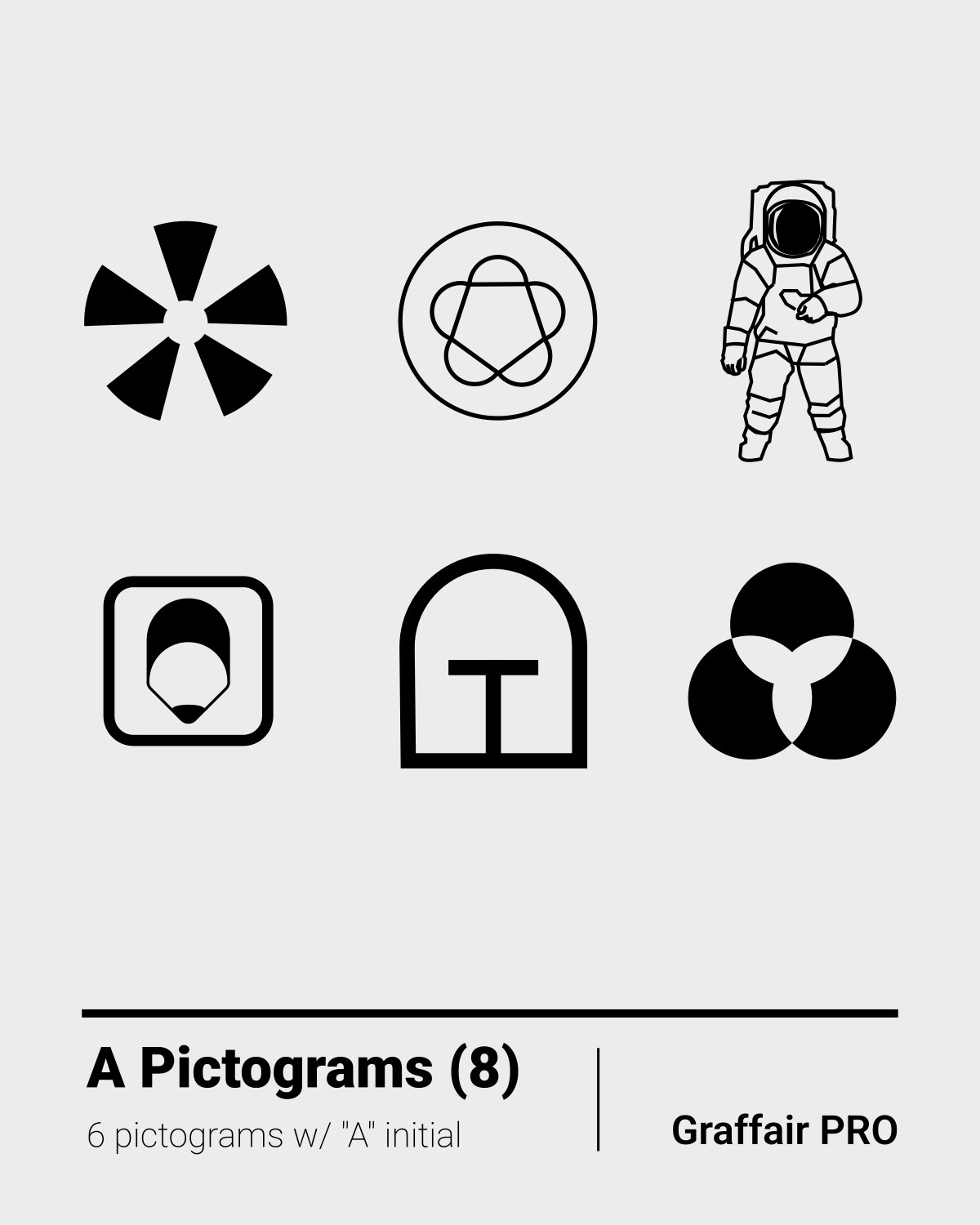 A Pictograms (8): The eighth set of six pictograms, each starting with an "A". These pictograms are part of the "1150 SVG Pictograms" mega bundle, which includes 1150 others.