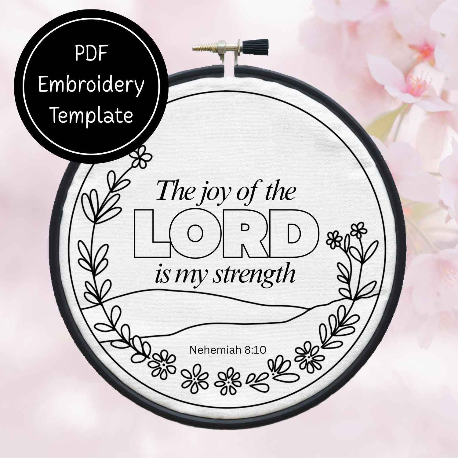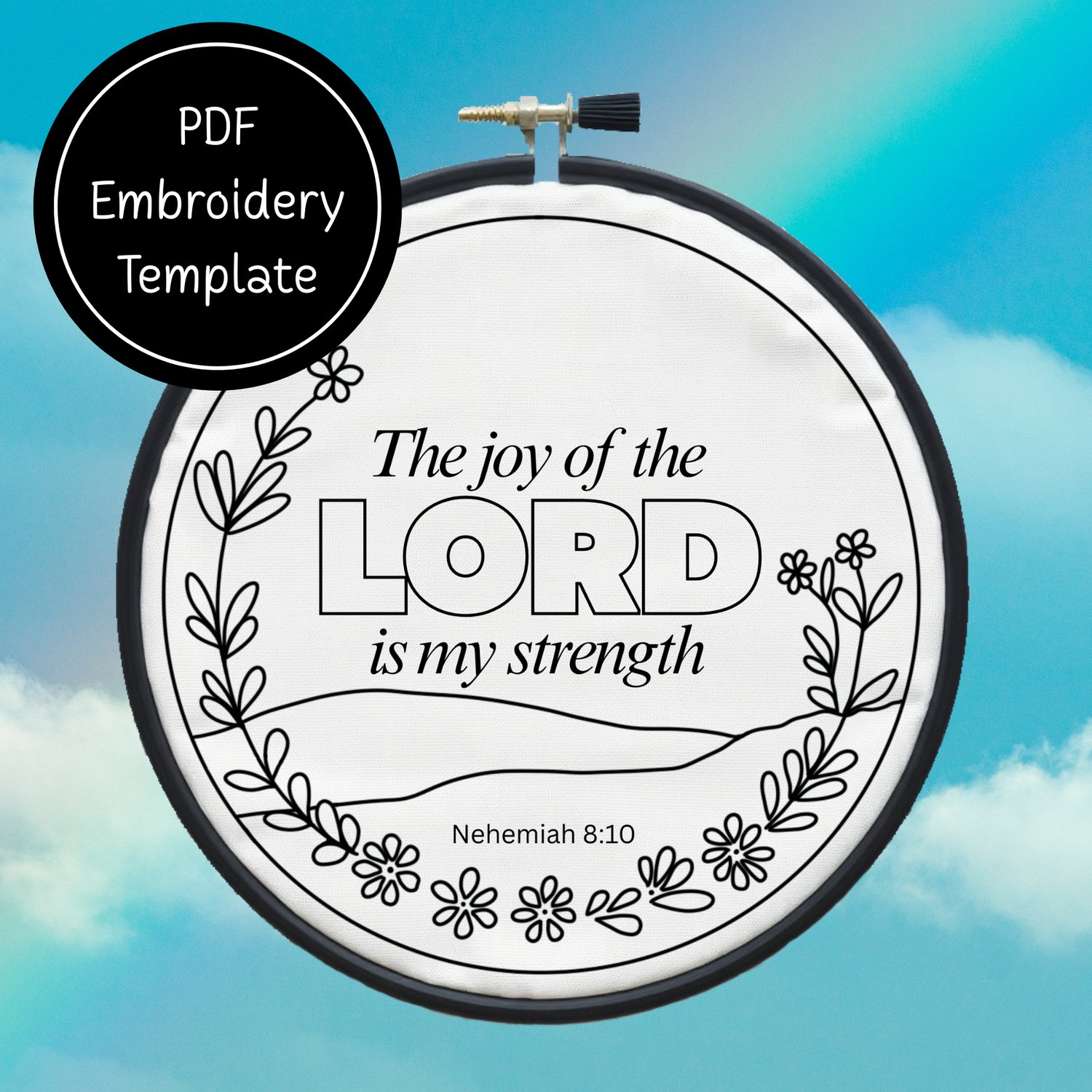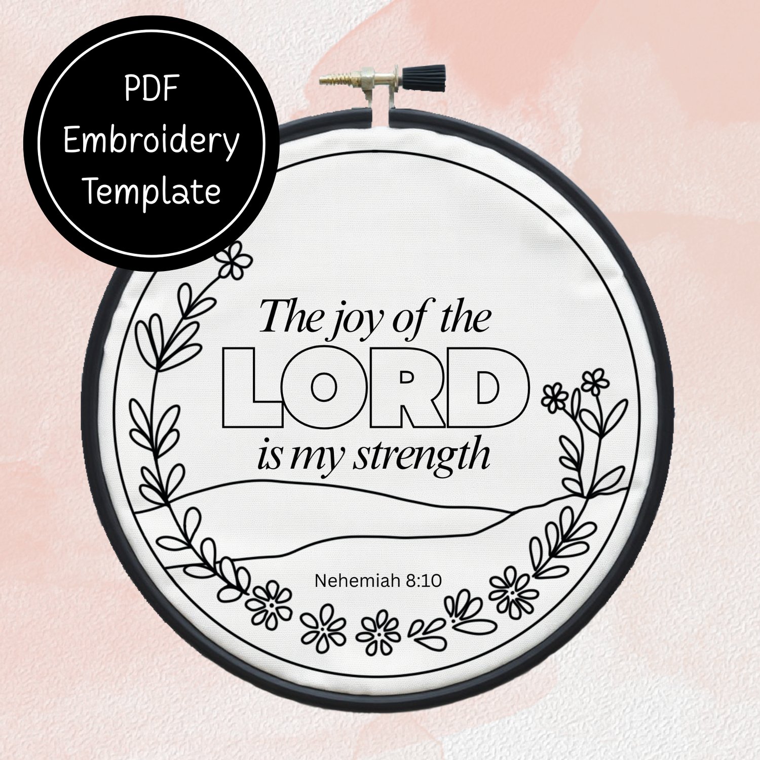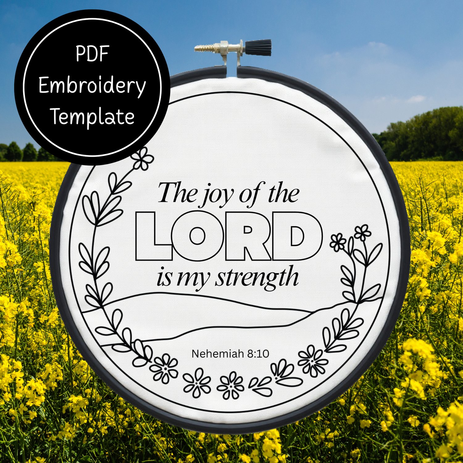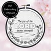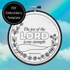 Joy of the Lord Christian Scripture - Hand Embroidery Template - Instant Download