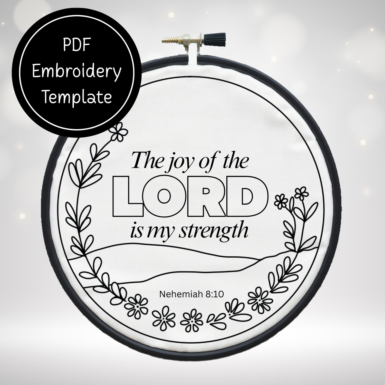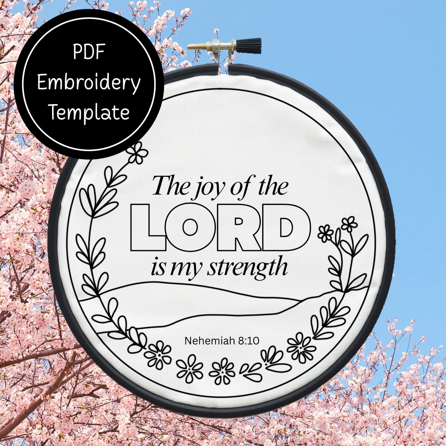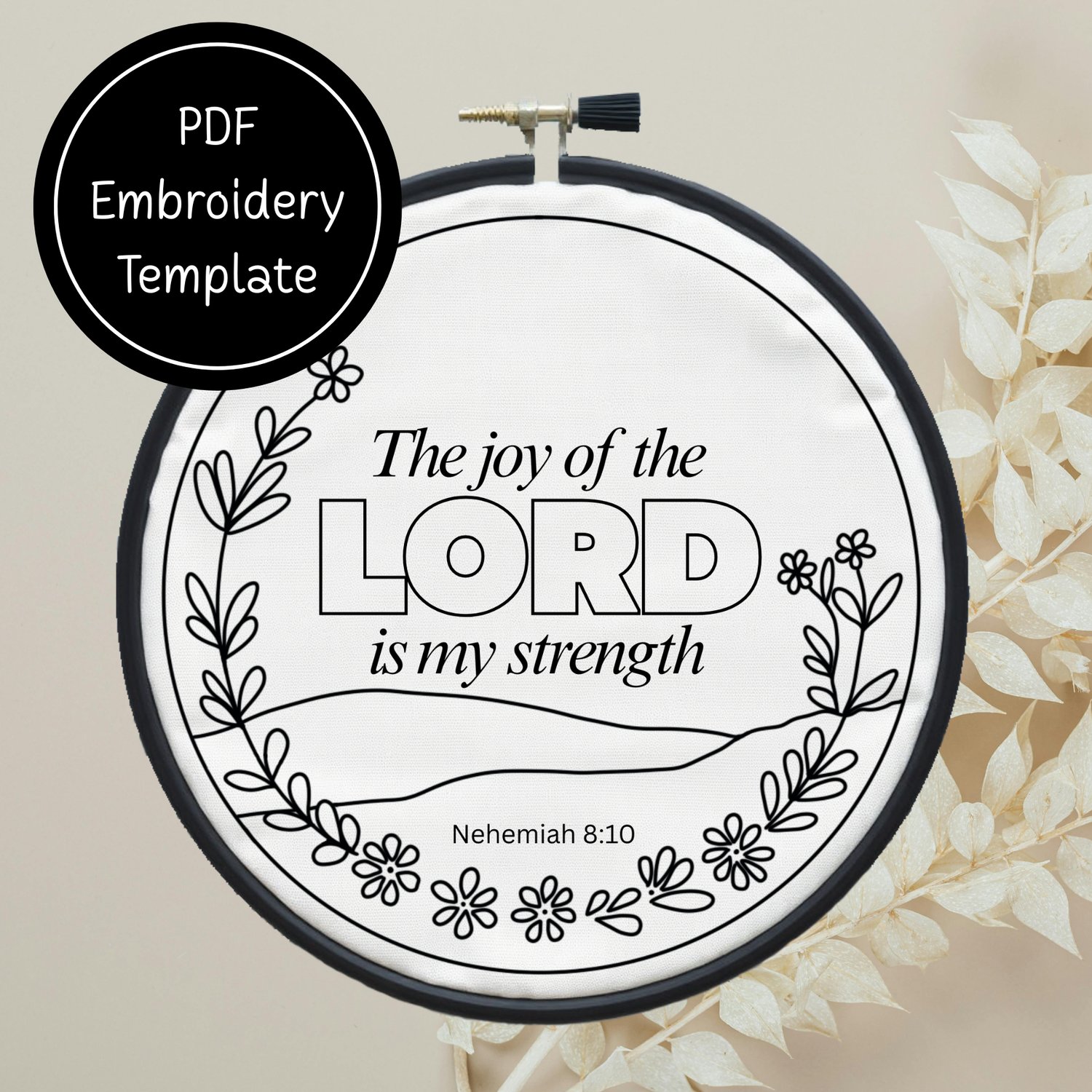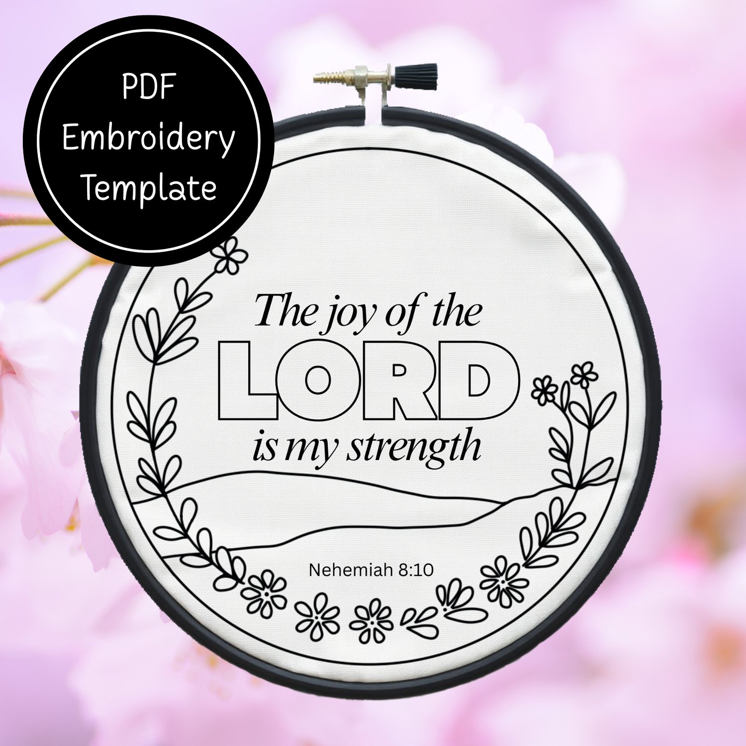 Joy of the Lord Christian Scripture - Hand Embroidery Template - Instant Download