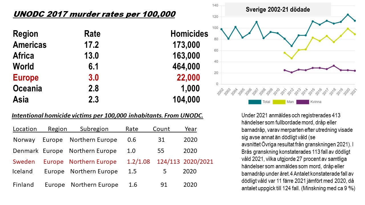 Dödligt våld per 100 000 invånare (English/Swedish)