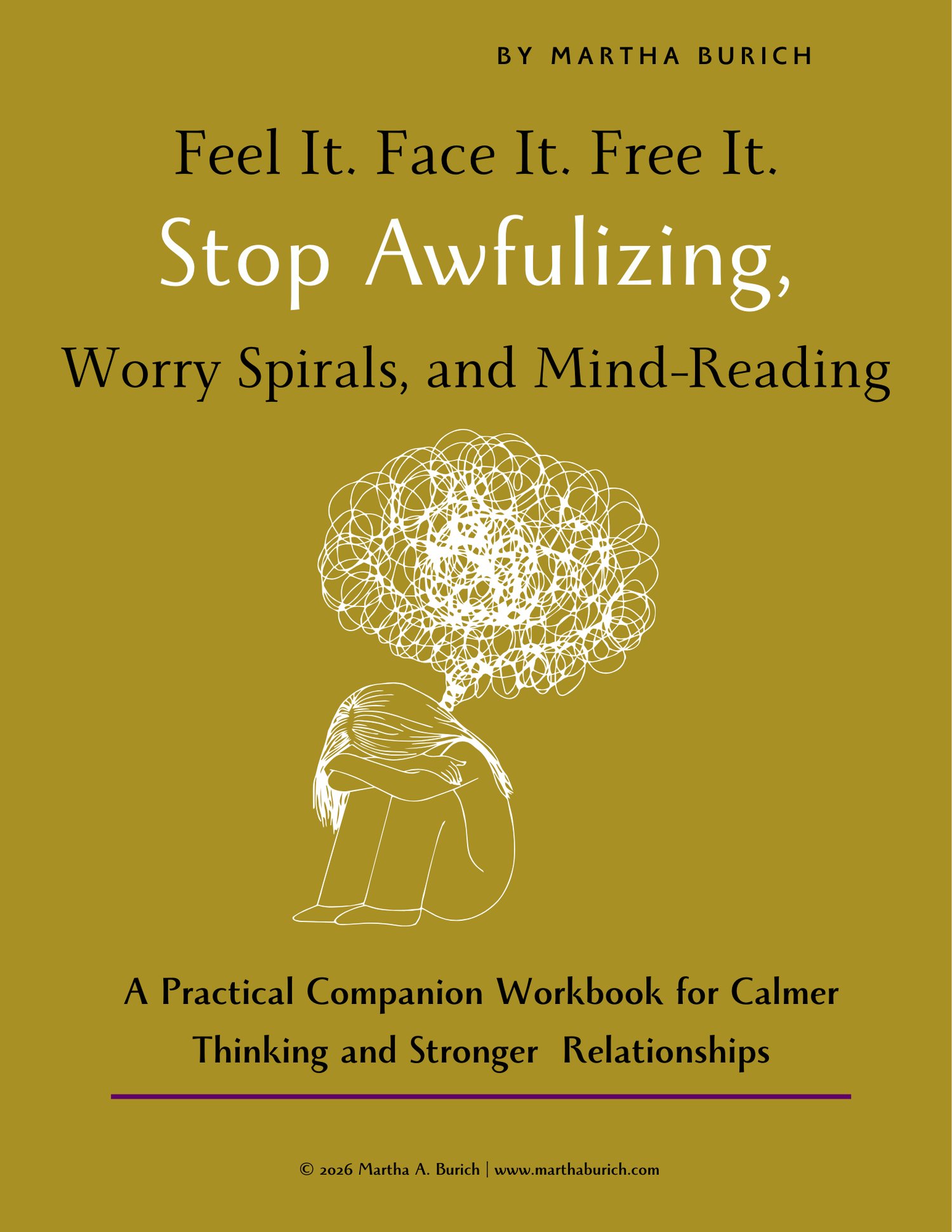 STOP AWFULIZING, WORRY SPIRALS, AND MIND-READING is a no-fluff, printable companion workbook from Martha Burich, M.Ed. — behavior-change consultant, parenting coach, and author endorsed by Jack Canfield of Chicken Soup for the Soul fame.