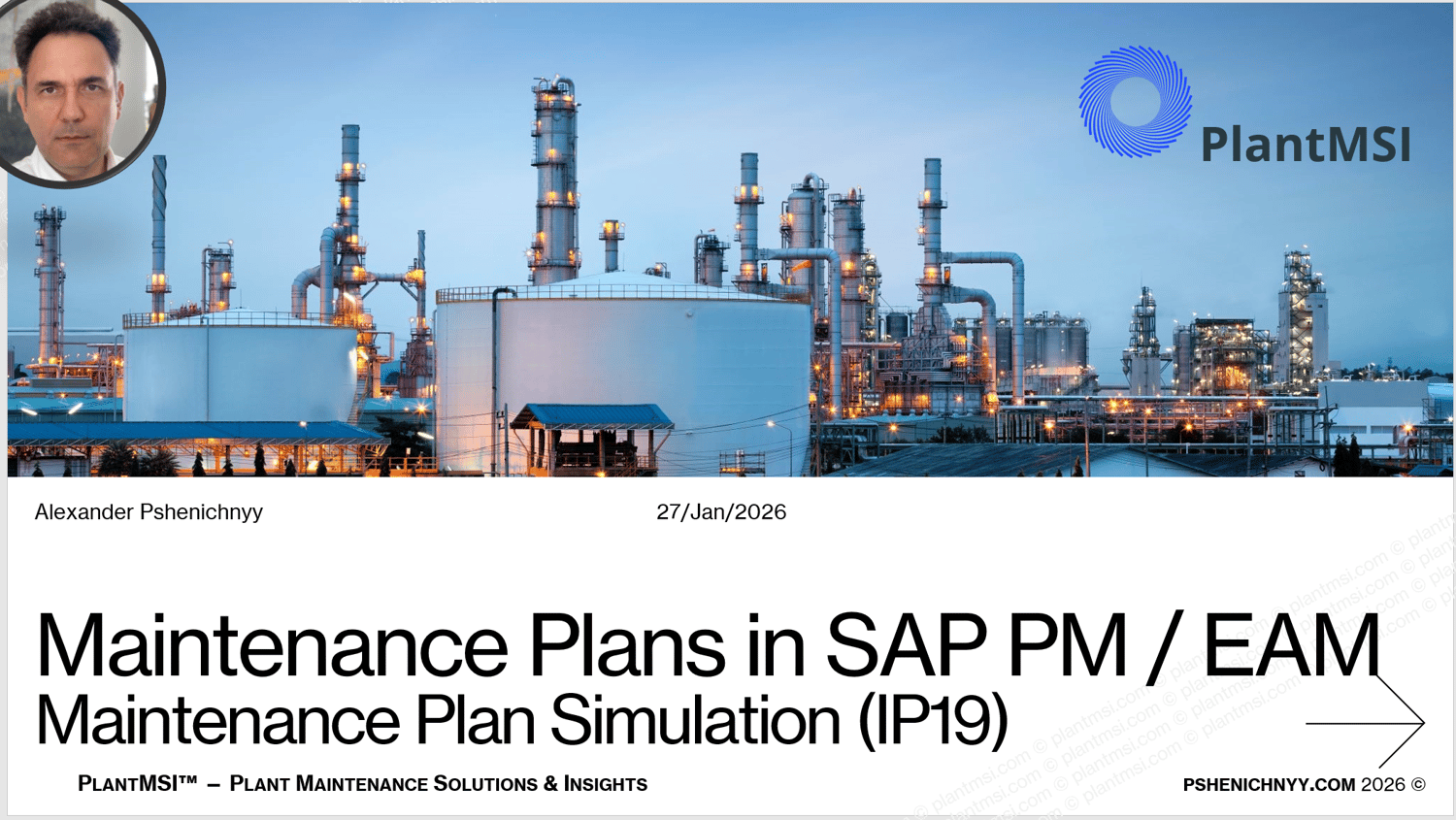 In this detailed material, I explain the specifics of how to run a simulation of future maintenance calls for multiple maintenance plans in SAP PM/EAM using transaction IP19, in order to obtain proper data for analysis. This can be helpful for Asset Engineers or Reliability Managers working with SAP PM/EAM.