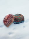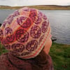 The hat is worked from the bottom up starting with 1x1 twisted ribbing. The body of the hat is worked in an all-over colourwork pattern. The pattern is charted.