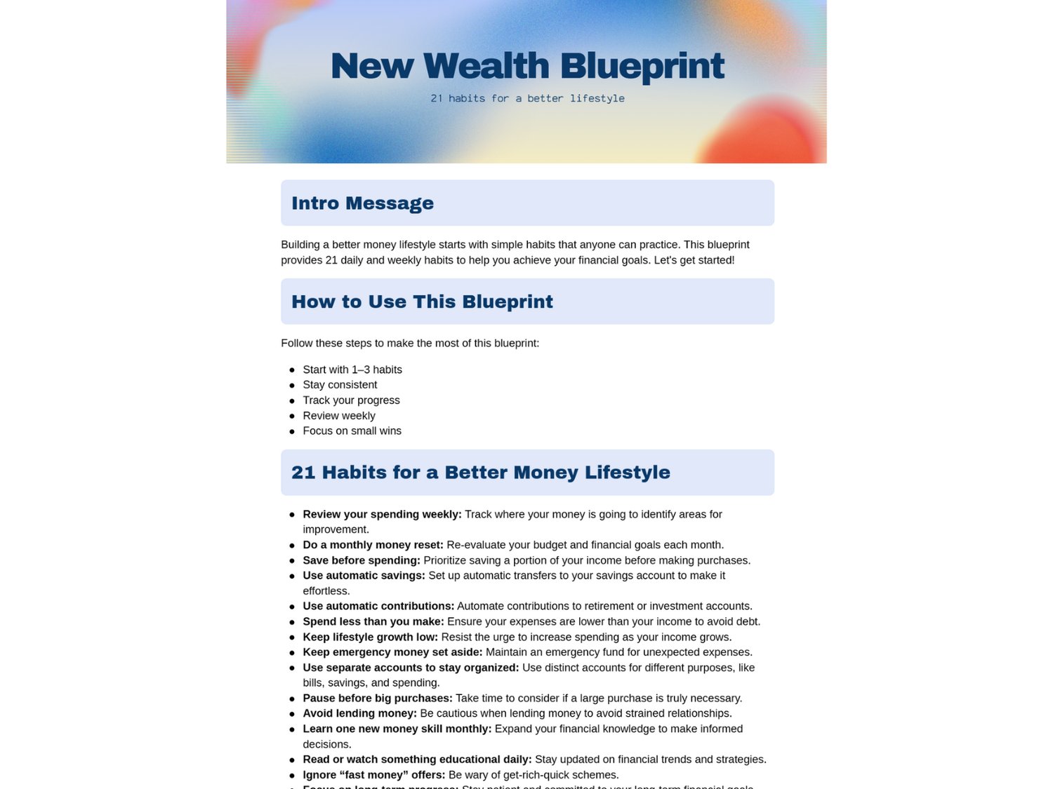 New Wealth Blueprint: 21 Essential Habits That Keep Rich People Rich