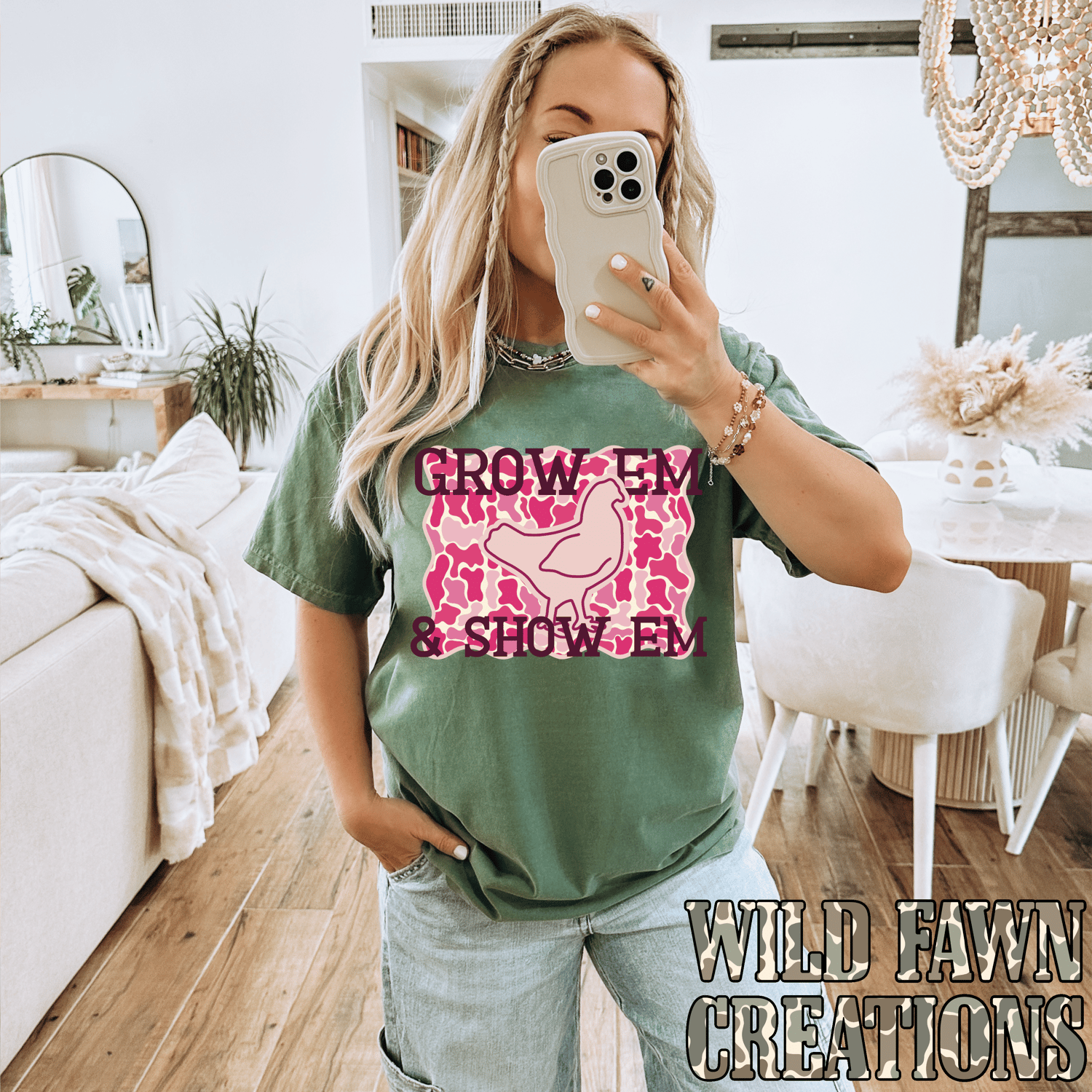 Grow ‘Em and Show ‘Em Pink Camo Design | Show Chicken PNG