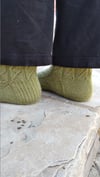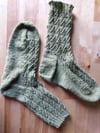 This is a PDF file for a knitted pair of socks. Working these socks as written, you can learn to use the same pattern for a cuff down or a toe up sock. This pattern does both using the same type of heel and the same charts for the leg and foot. The pairs I made each have one of each sock or make a pair of each or choose your favorite method and get started.