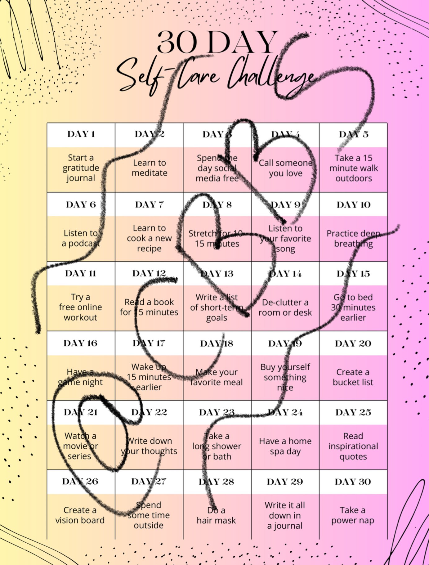 The 30 Day Self Care Challenge is a downloadable template designed to help individuals prioritize and integrate self-care into their daily routine. With daily prompts and activities for 30 days, this challenge will help you establish healthy habits and foster a positive mindset.