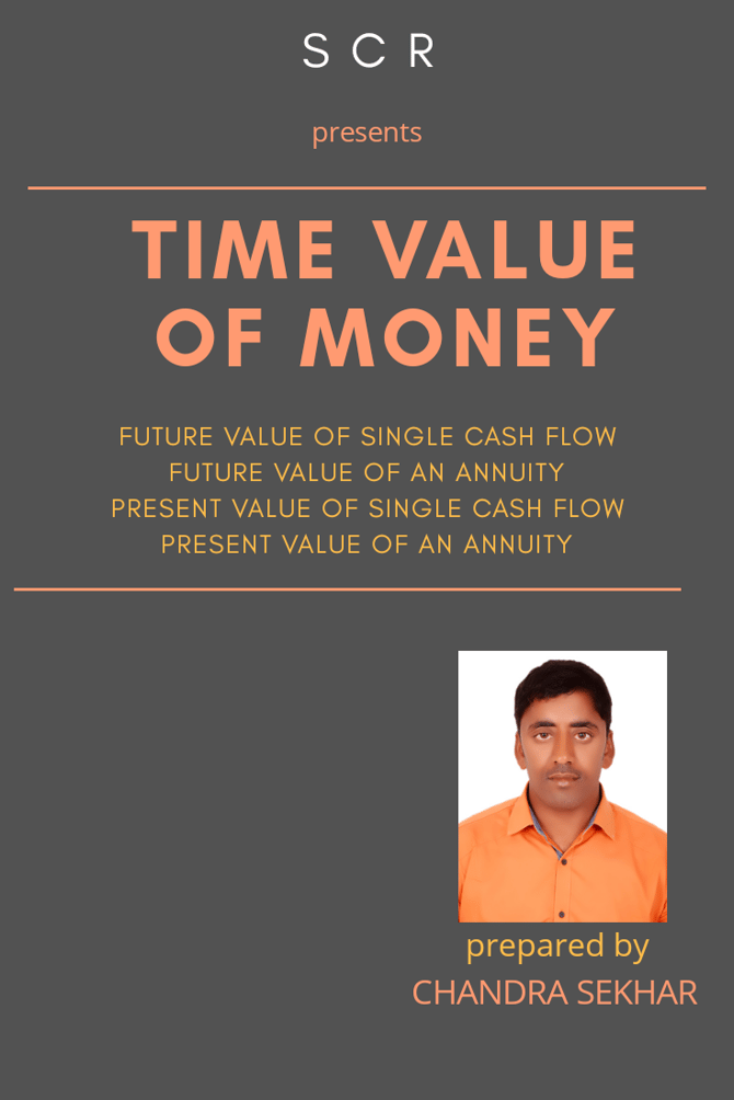 This book is brought up in accordance with the subject of Time value of money. In this book, the subject matter is expressed in clear way so that each and every reader understand the subject easily. In the book, I clearly mentioned the meaning and types of time value of money. All the concepts are important. The main features of the book are simple understanding and key concepts. This book is very helpful to readers to learn about Time value of money. This book is useful to everyone in Finance and Accounts, Banking and Financial institutions field. It is hoped that this will facilitate a better understanding of the subject matter. I welcome any valuable suggestions regarding this book in a better and improved way. Suggestions will be incorporated in the subsequent editions.