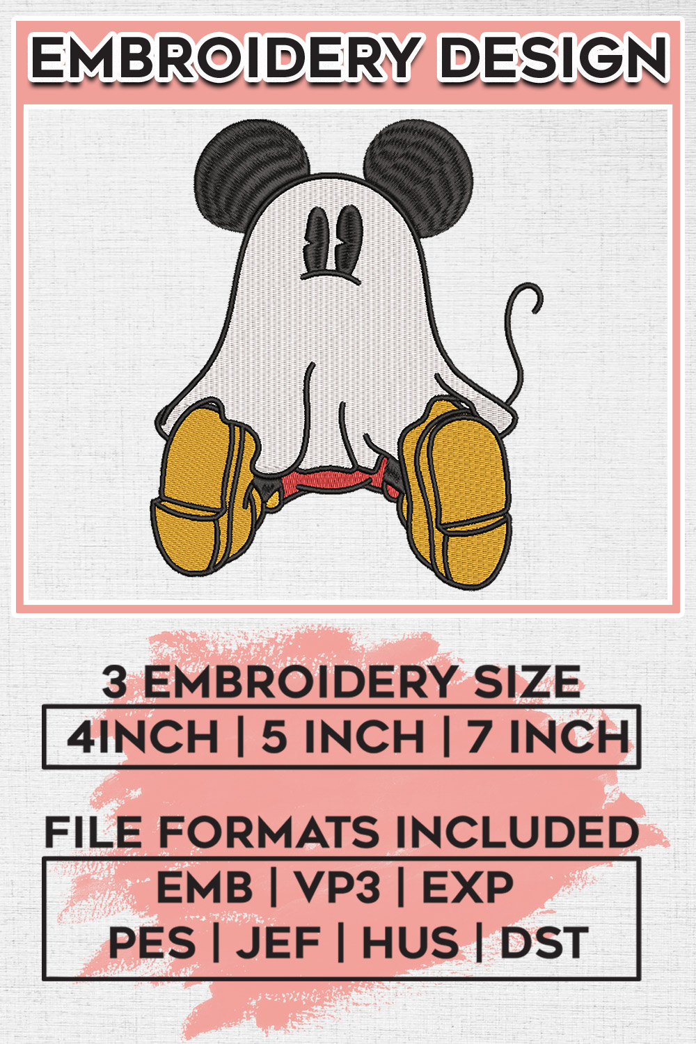 Cute Mickey Mouse Ghost Embroidery Designs, Mickey Mouse Halloween Embroidery Files, Boo Ghost Halloween Embroidery, Spooky Season Machine Embroidery Design, Digital Download