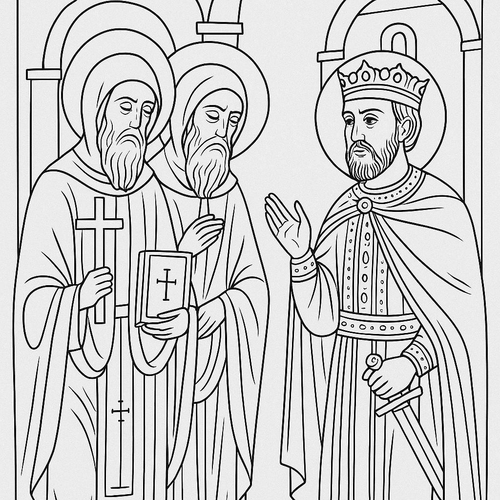 Saints Cyril and Methodius, coloring ebook, 42 designs, digital product, instantly download
