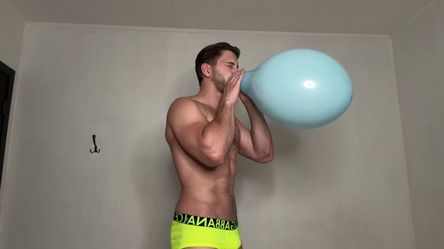 Enjoy the sounds of stretching latex, the visual suspense, and the relentless pursuit of the pop in this video of control, power, and extreme endurance.