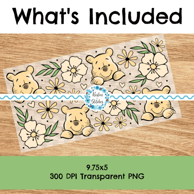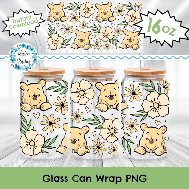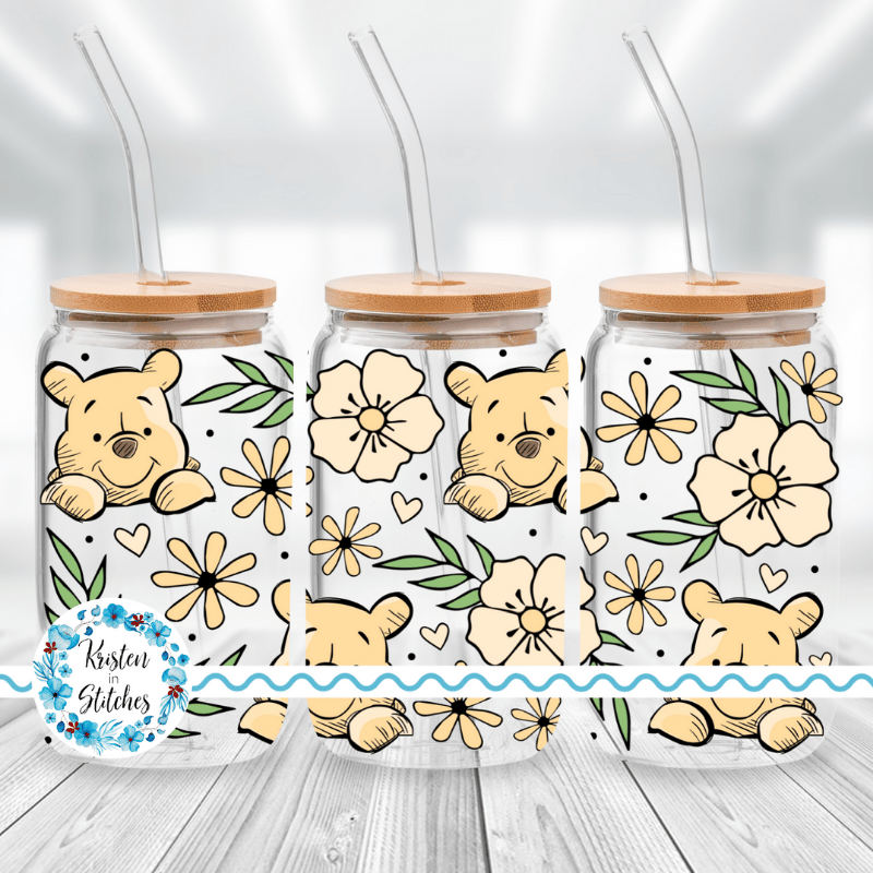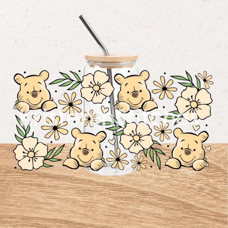 Classic Winnie the Pooh Floral Glass Can Wrap Transparent PNG