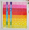 Strips pieced in warm colours, broken up with two strips of cool colours..
