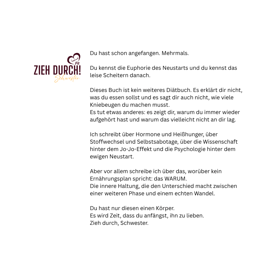 Ich schreibt über Hormone und Heißhunger, über Stoffwechsel und Selbstsabotage, über die Wissenschaft hinter dem Jo-Jo-Effekt und die Psychologie hinter dem ewigen Neustart.
