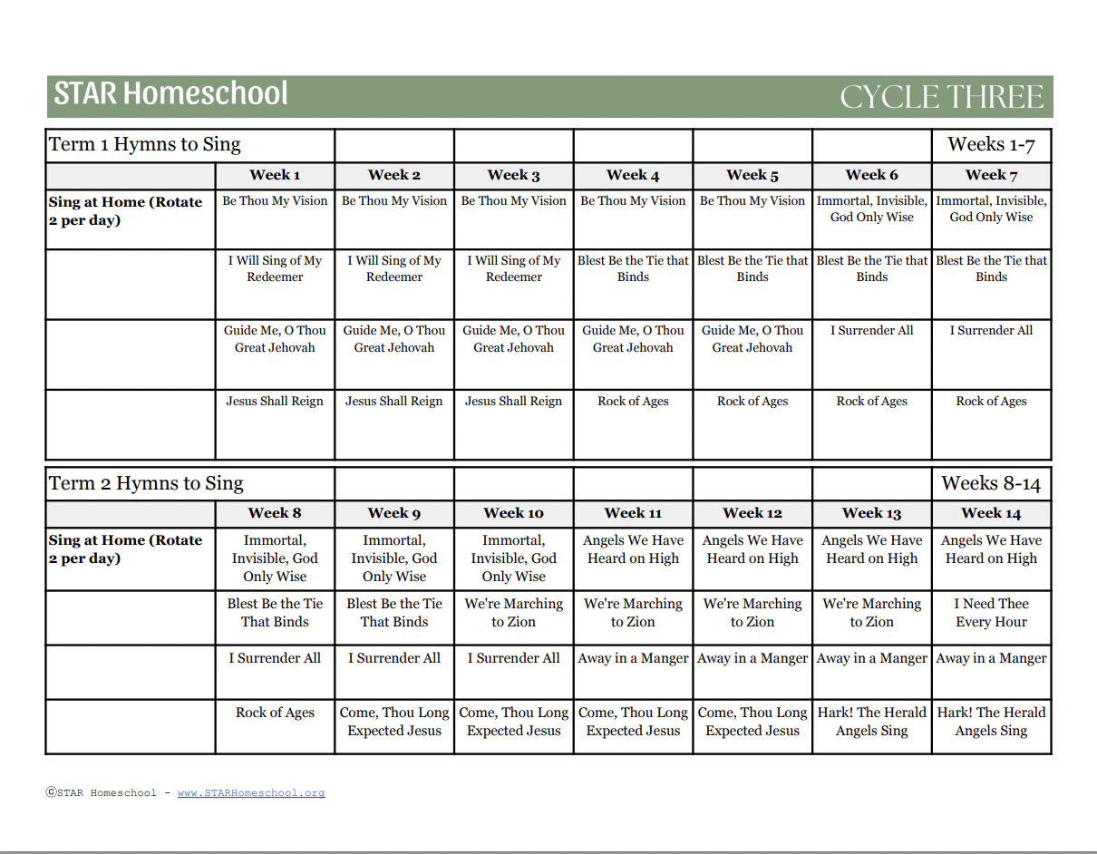 Cycle 3 Hymns to Sing and Study