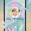 Invite your guests for a special day with our stunning digital birthday invitation template, designed to make your celebration unforgettable. This beautifully crafted template features a sparkling background adorned with sweet mermaids in this under the sea themed design.