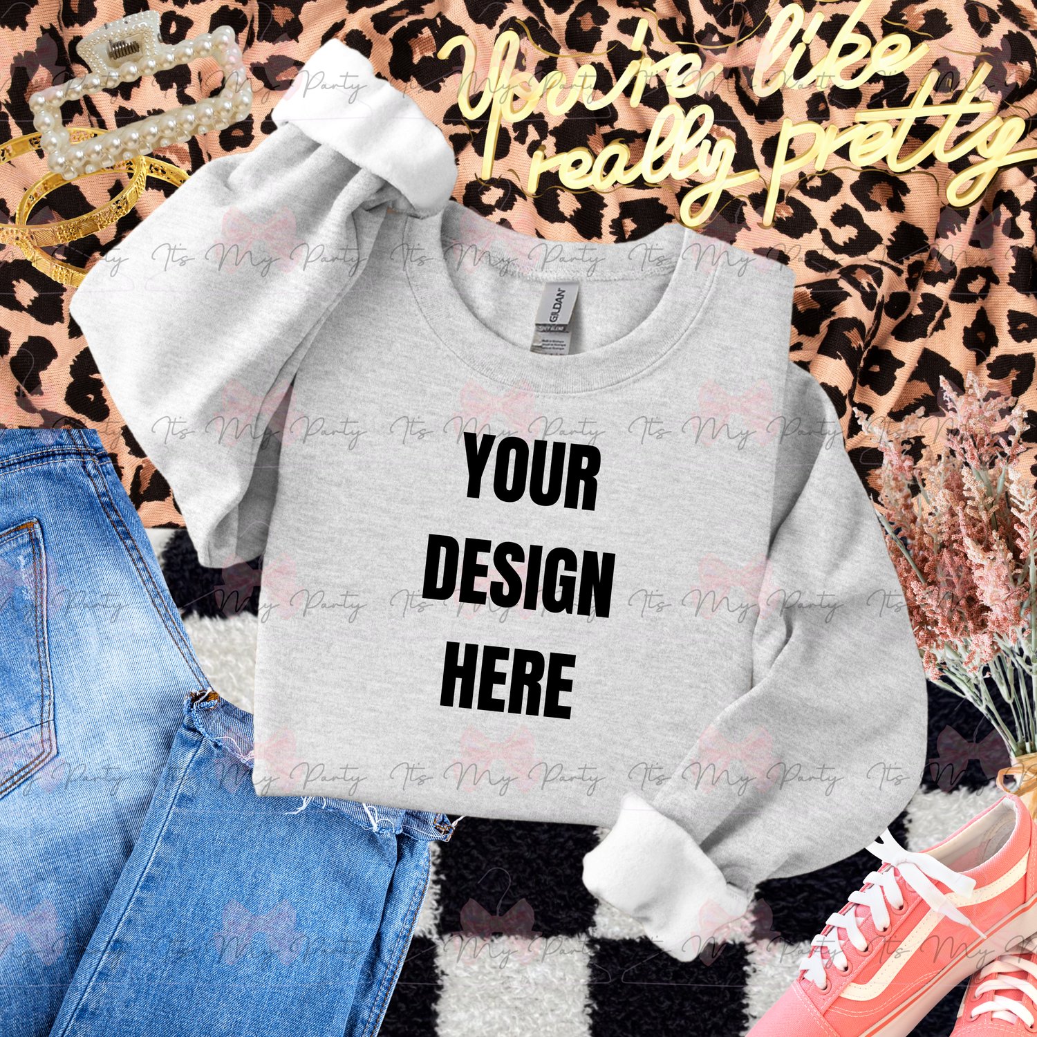 ash grey crewneck “you’re like really pretty” leopard/ checkered MOCKUP