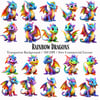 The Rainbow Dragon Clipart set is a stunning collection of 22 high quality PNG files. Each clipart file features a super cute rainbow dragon. With a transparent background, these clipart images can be easily incorporated into various projects.