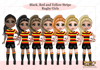 Instant digital download of our Rugby Girls in Black, Red and Yellow Stripe PNG (20 PNG’s)