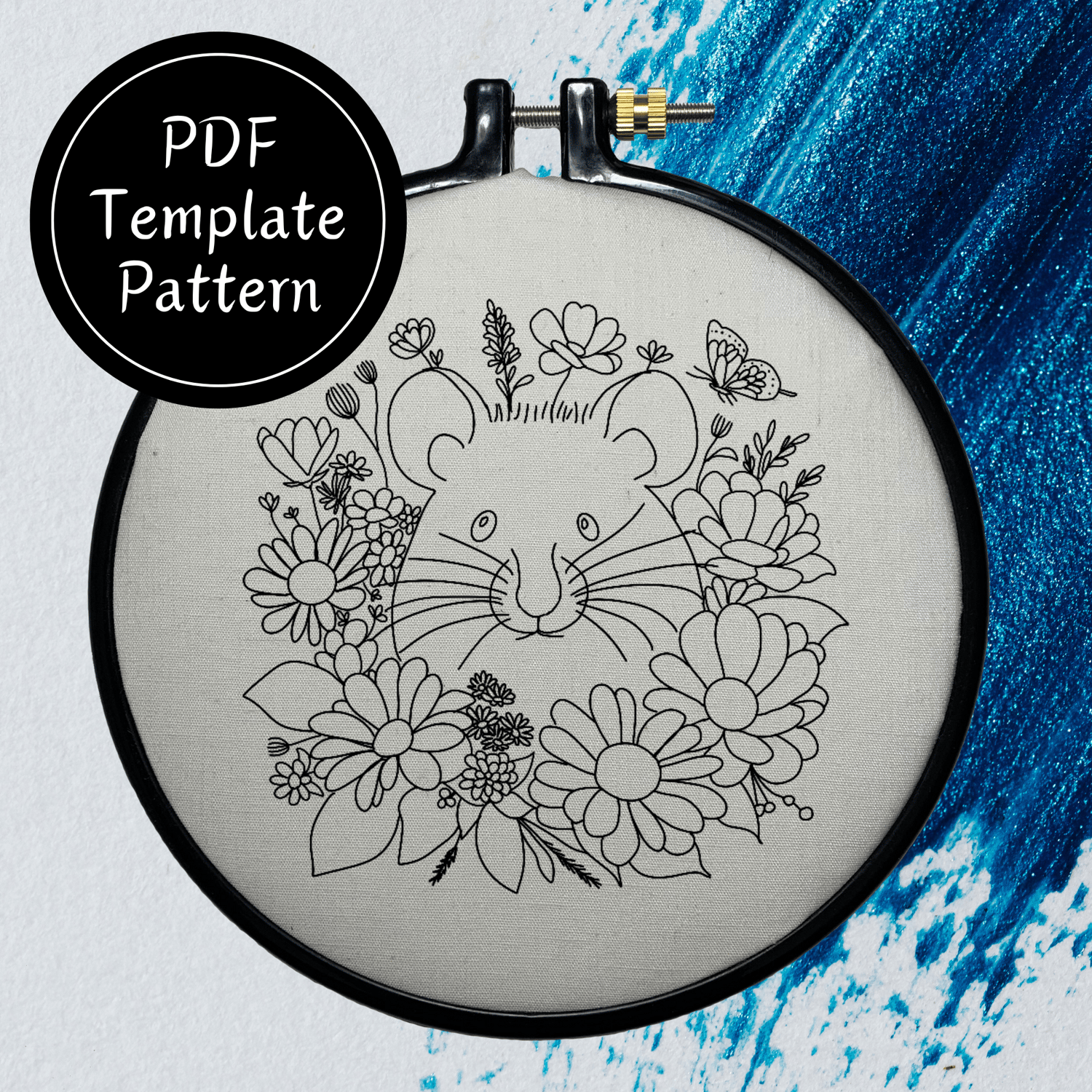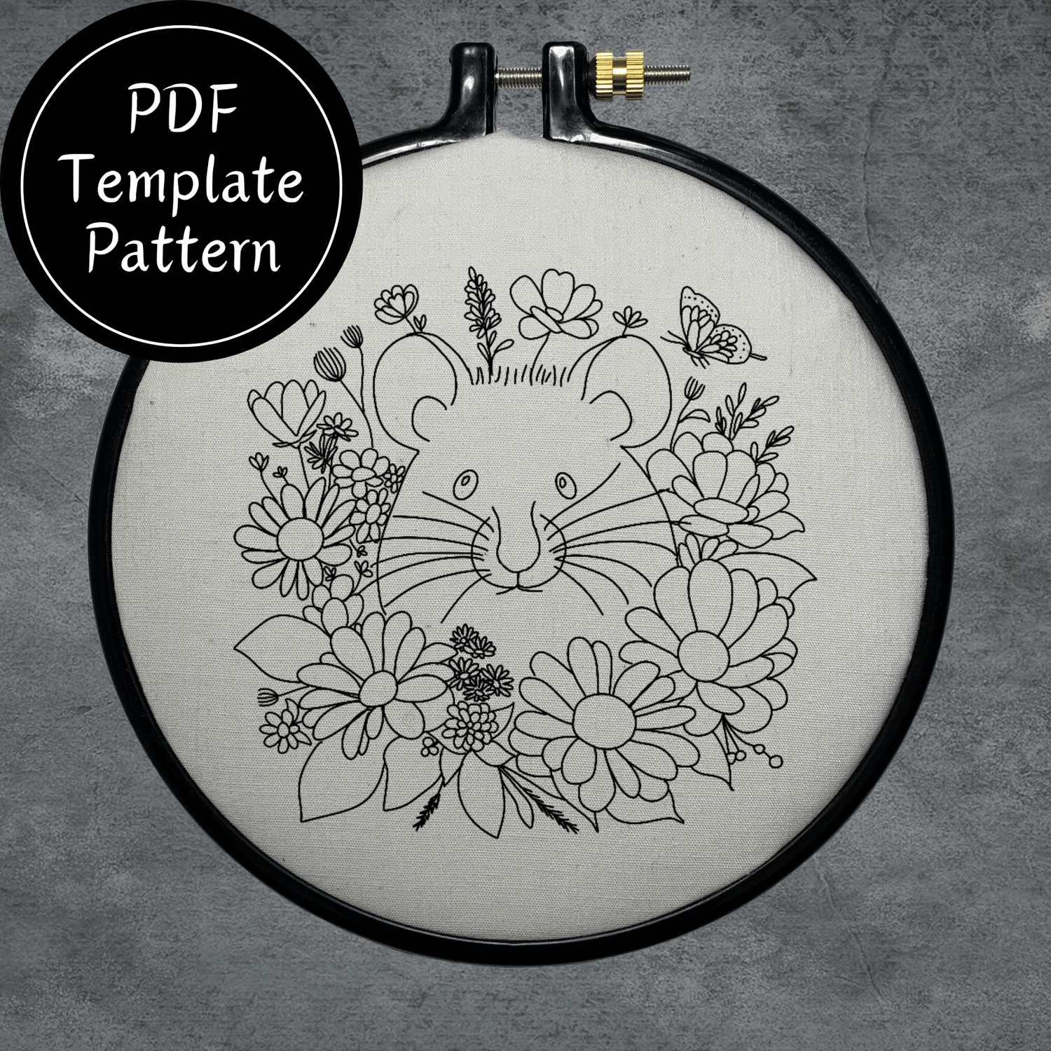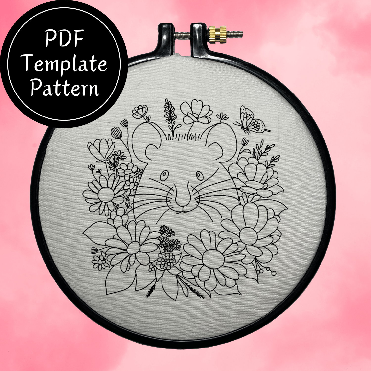 Mouse In Flowers Hand Embroidery Pattern DIY Embroidery
