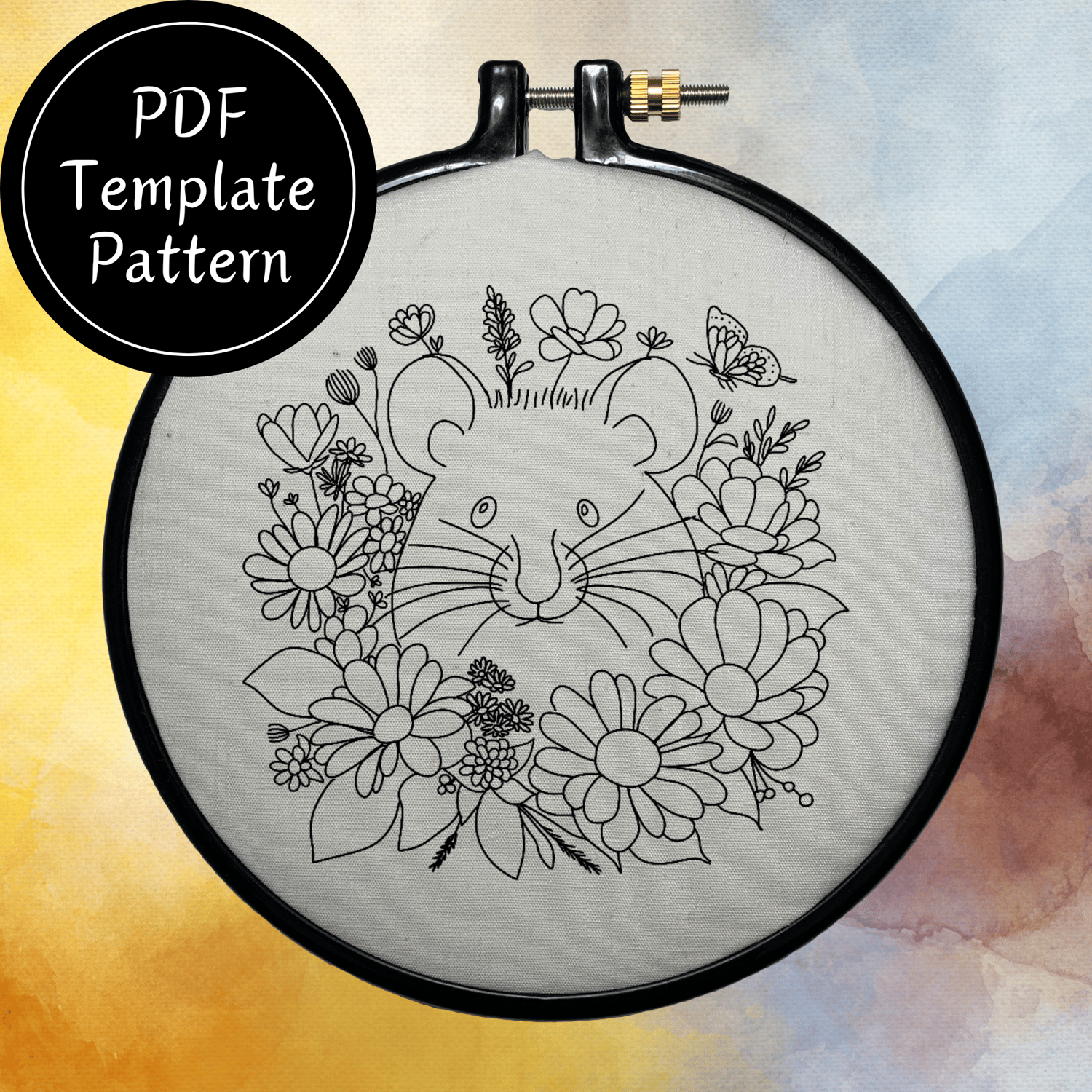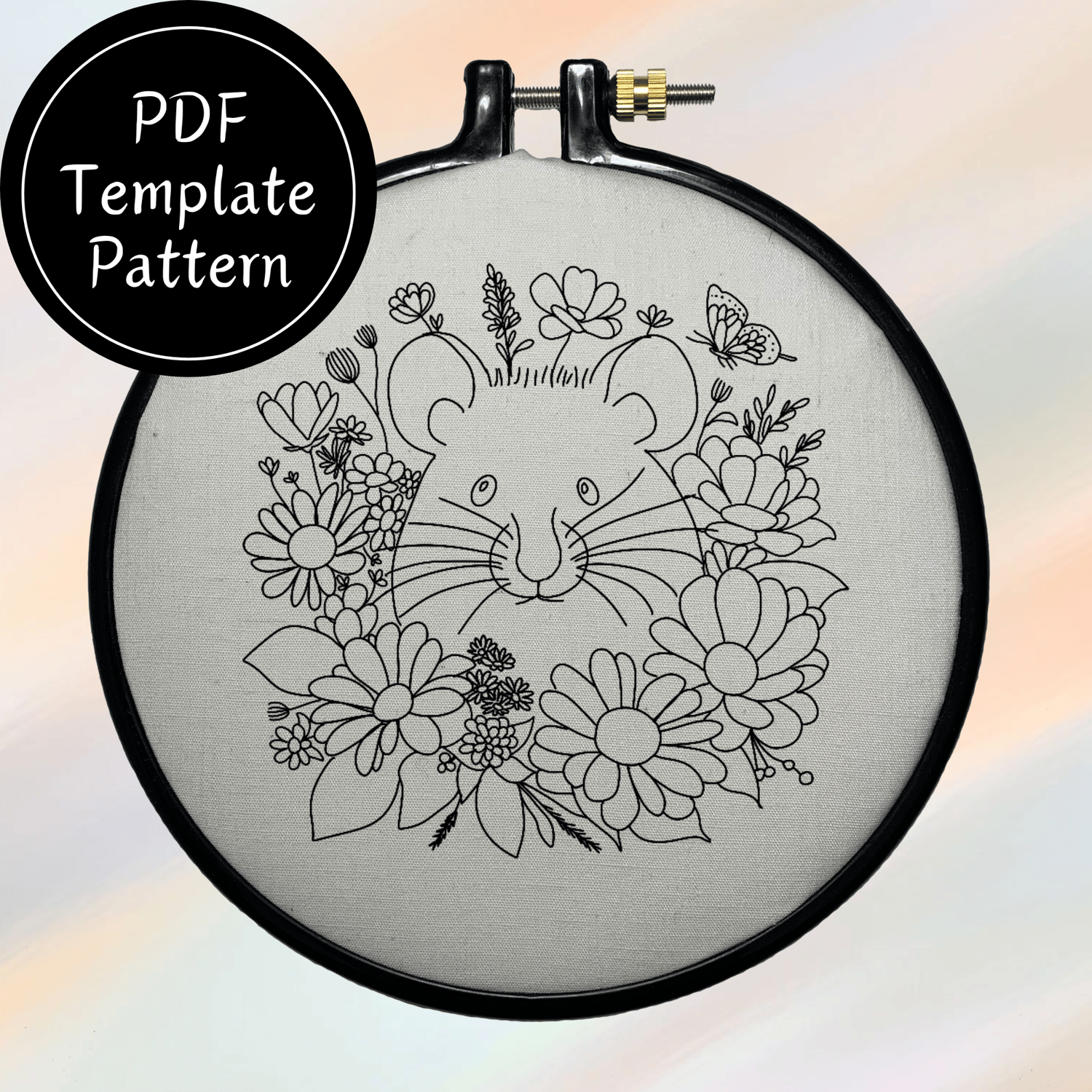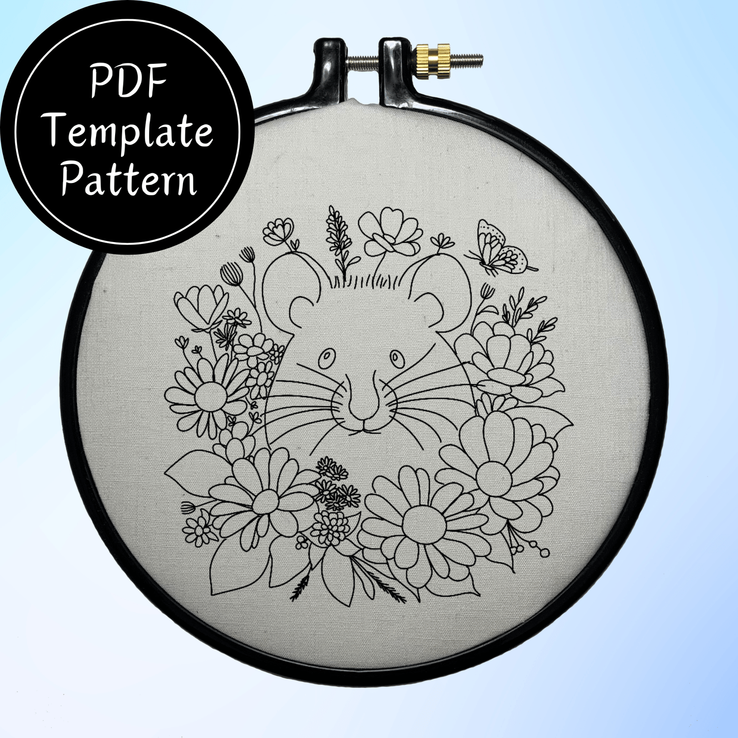 Mouse In Flowers Hand Embroidery Pattern DIY Embroidery