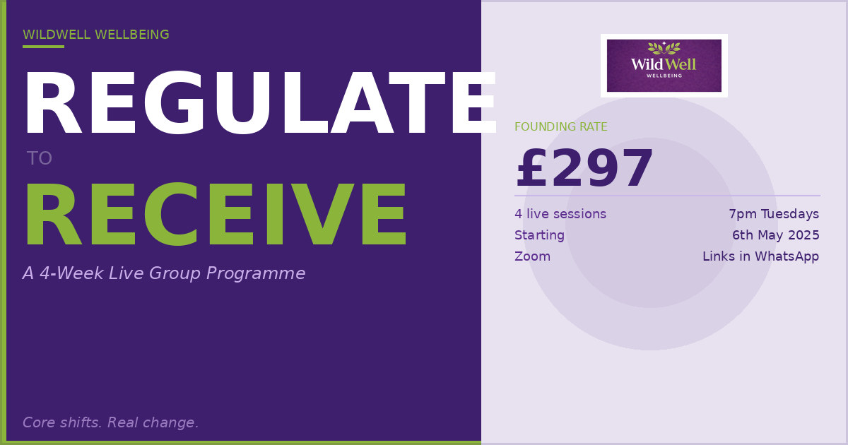 Regulate to Receive is a 4-week live group programme that works at the level where patterns are actually formed. Not mindset. Not strategy. The nervous system, the subconscious, and the identity. In a precise sequence that allows each layer to create the conditions the next one needs.