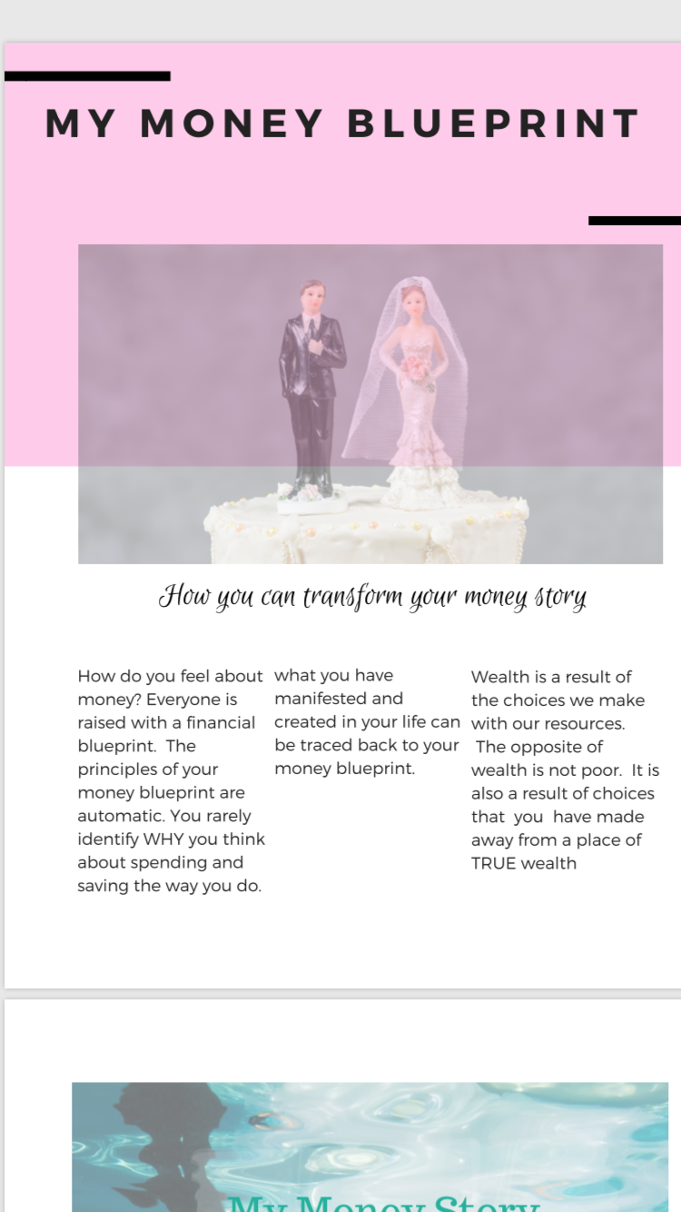 This resource will help you uncover your money blueprint as it pertains to your childhood to where you are now as a WEALTH creator and MONEY manifestor. Use this resources as a guide to understand your money blueprint past as well as to help you to lay out a plan for going forward in your WEALTH journey.