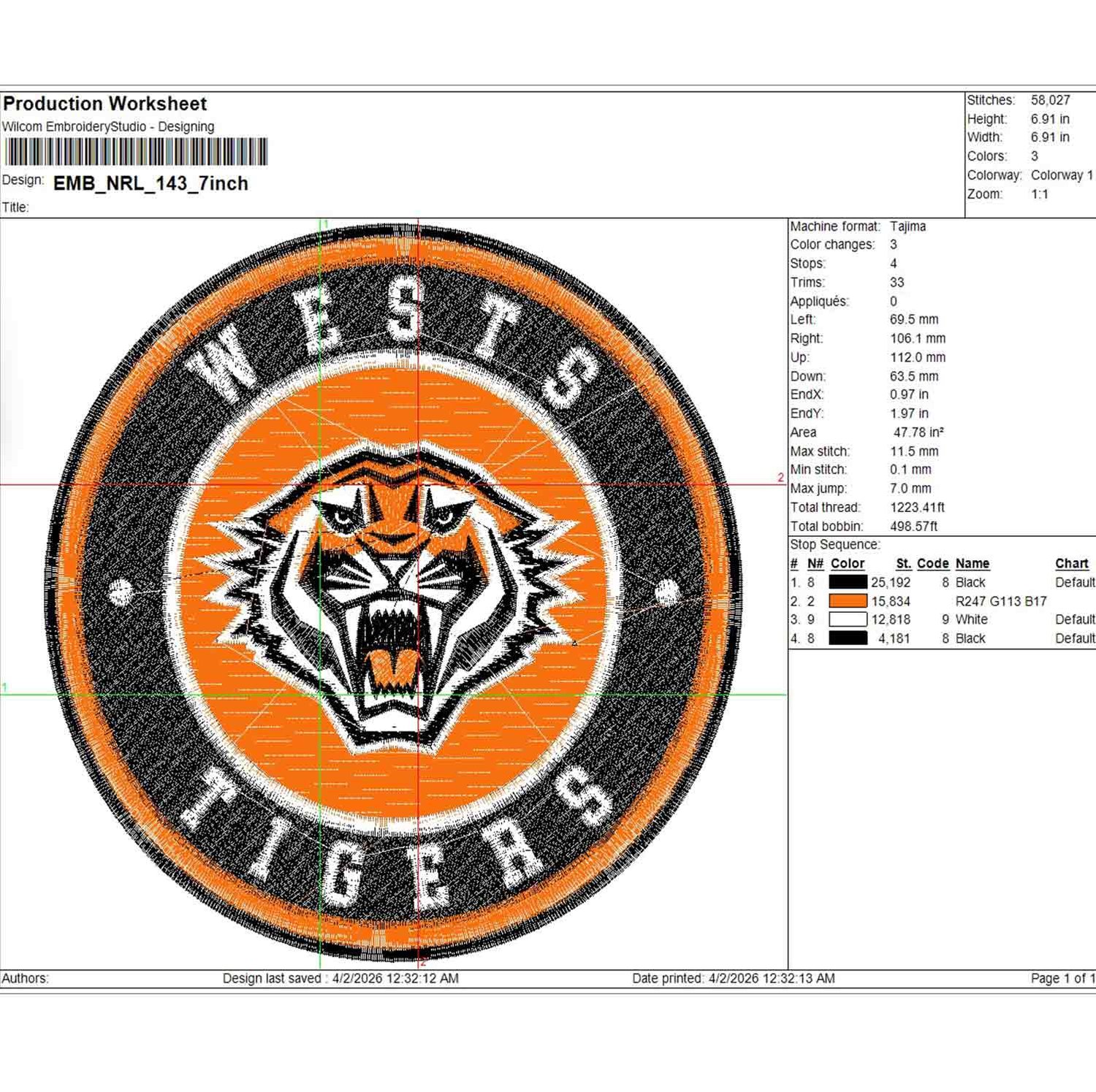 Wests Tigers NRL Rugby Logos Embroidery Designs, NRL Wests Tigers Team Logo Embroidery, Rugby League Machine Embroidery Design, Digital Dowload