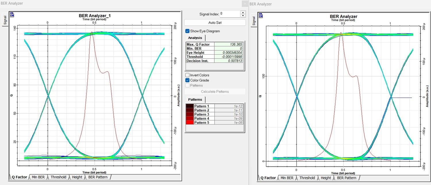 Optisystem simulation file for the generation and detection of an optical DQPSK signal. BER results are also displayed after demodulation of the received DQPSK signal.