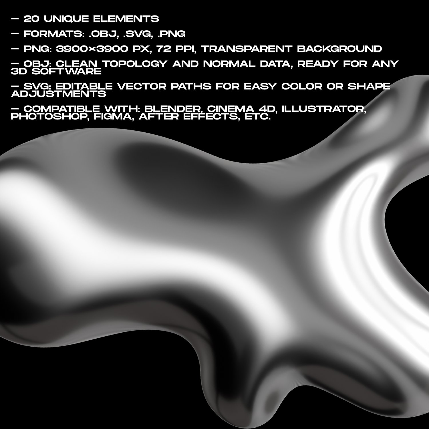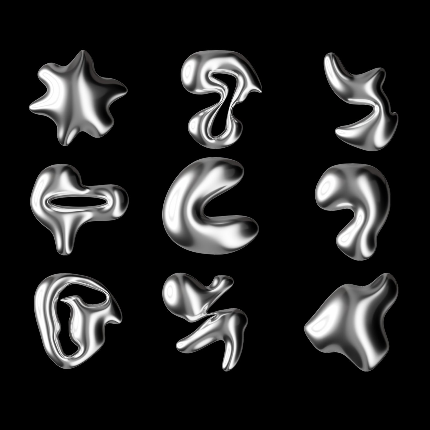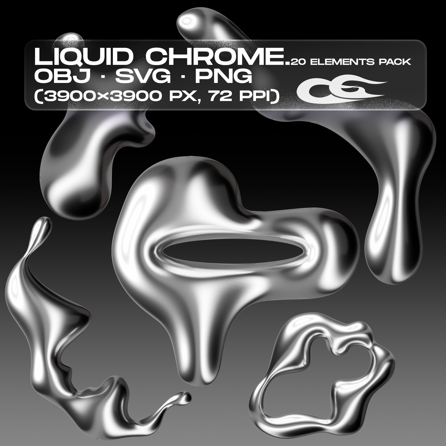 Explore a curated pack of 20 liquid chrome elements designed for creators seeking a sleek, reflective, and futuristic visual style.