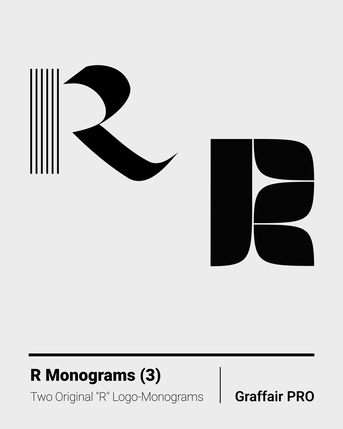 R Monograms (3): The 3rd set of two original "R" logo monograms, included in the "1050 SVG Monograms" super bundle, which also features an Index catalog.